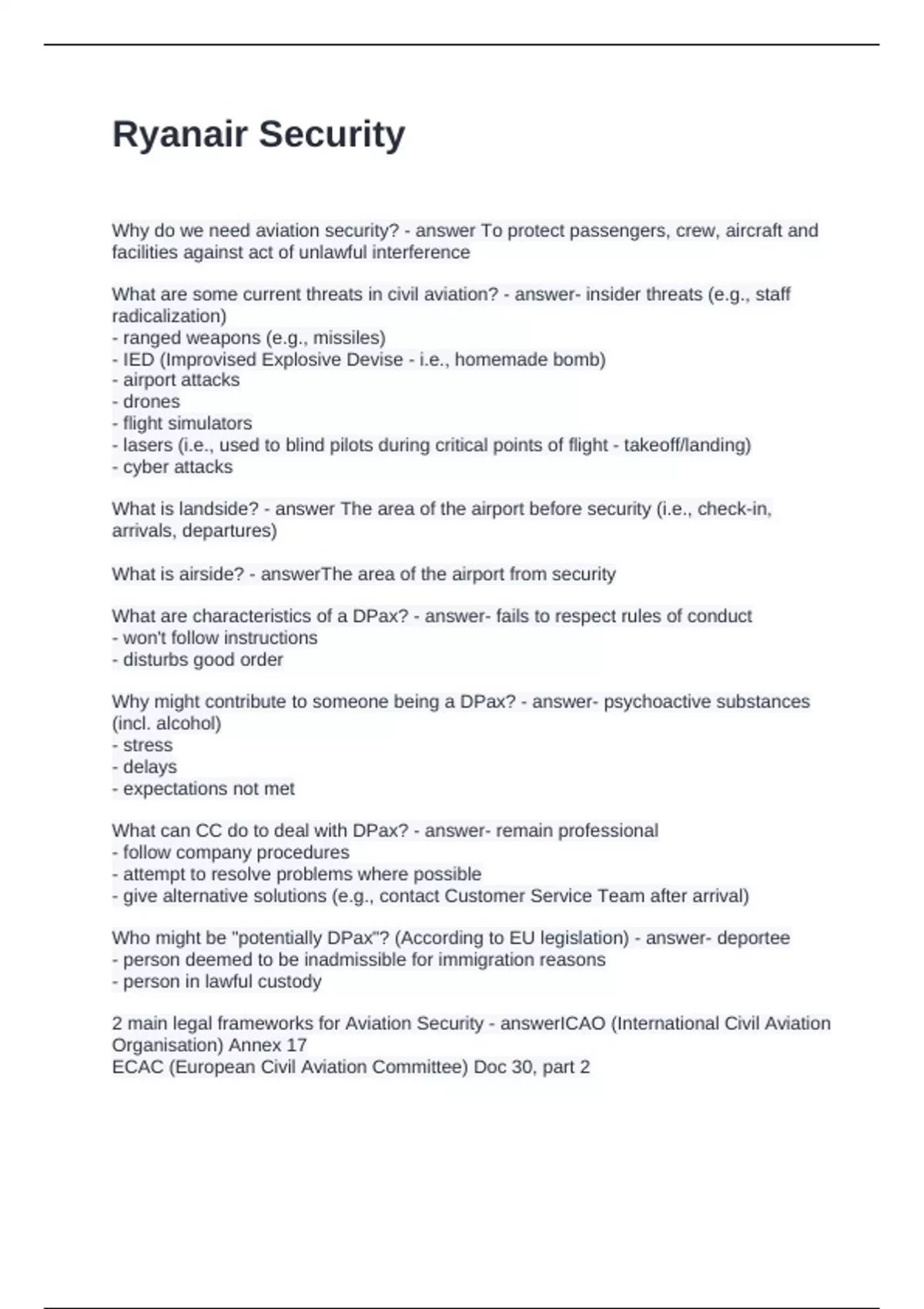 2 main legal frameworks for Aviation Security - answerICAO (International Civil Aviation