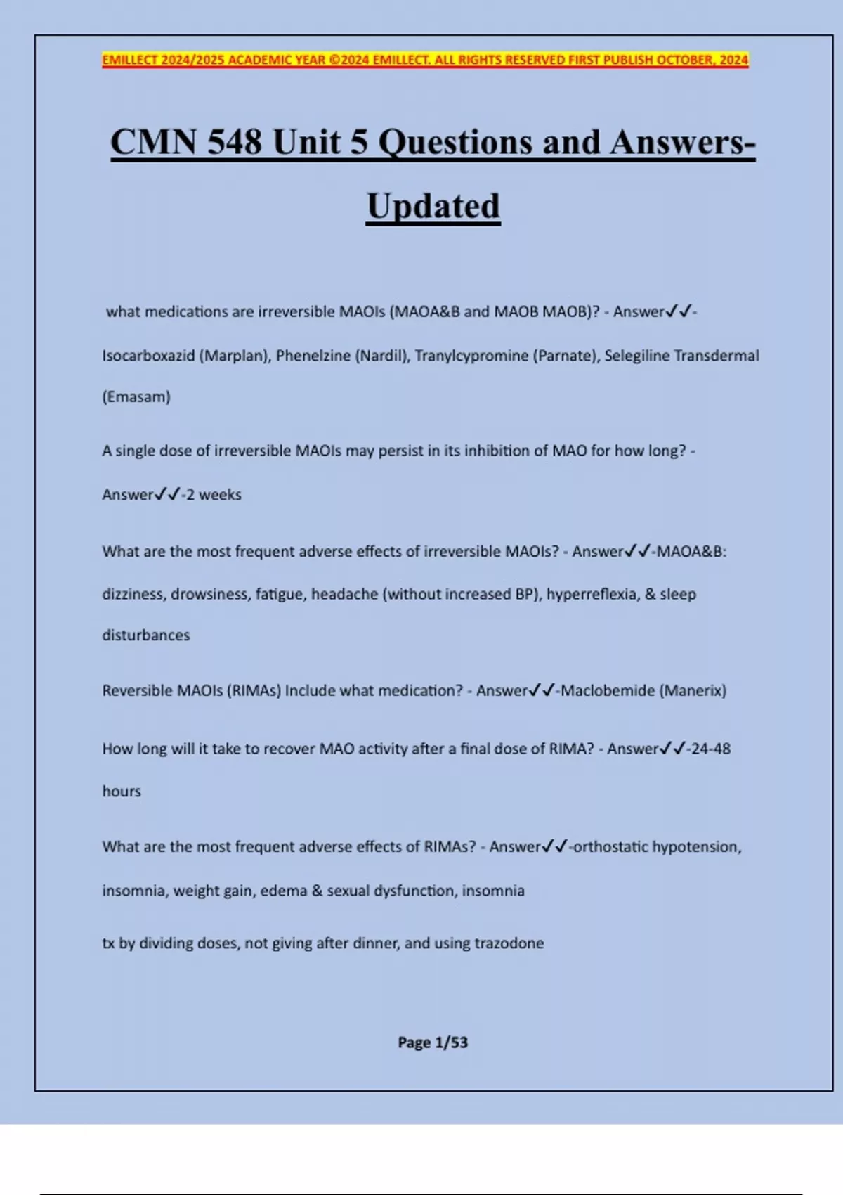 MAOIs. How would the PNP prevent this? - Answer✔✔-REVERSABLE MAOI's: No