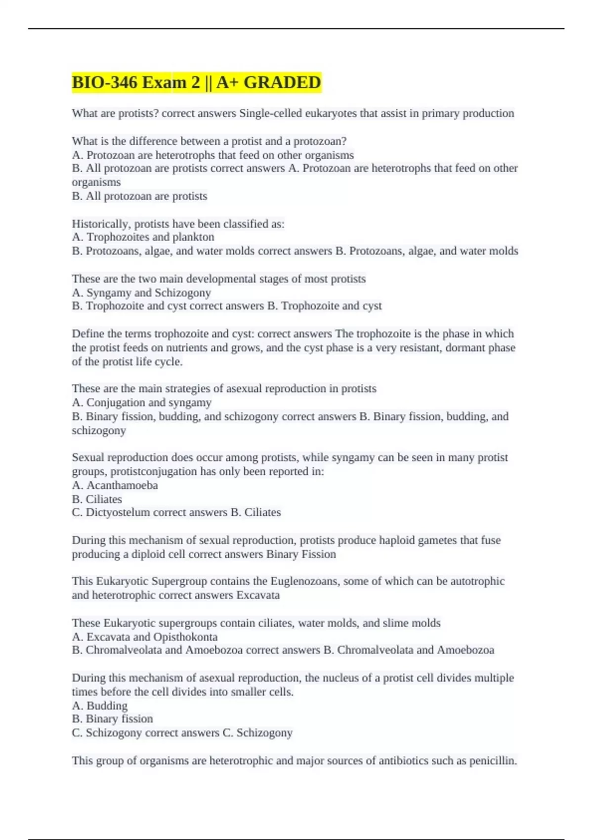 C. Dictyostelum correct answers B. Ciliates