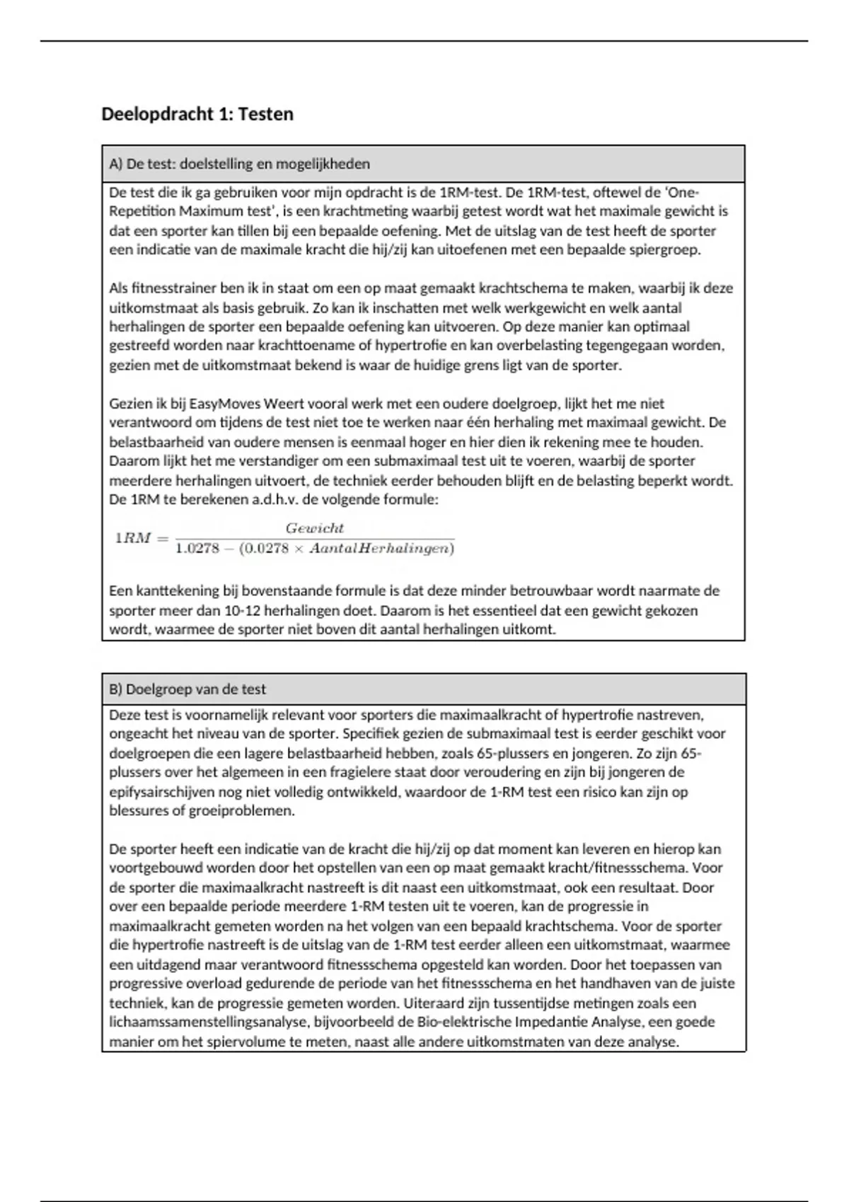 De test die ik ga gebruiken voor mijn opdracht is de 1RM-test. De 1RM-test, oftewel de ‘One-