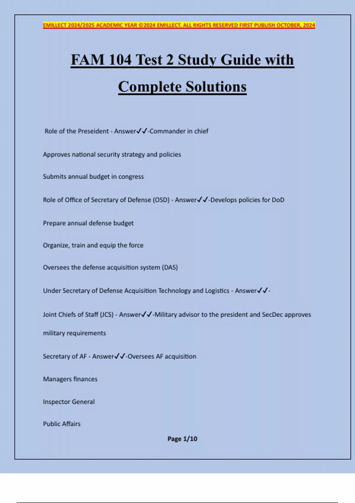 Role of Office of Secretary of Defense (OSD) - Answer✔✔-Develops policies for DoD