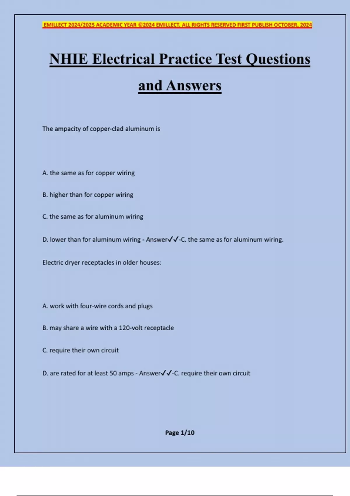 D. lower than for aluminum wiring - Answer✔✔-C. the same as for aluminum wiring.