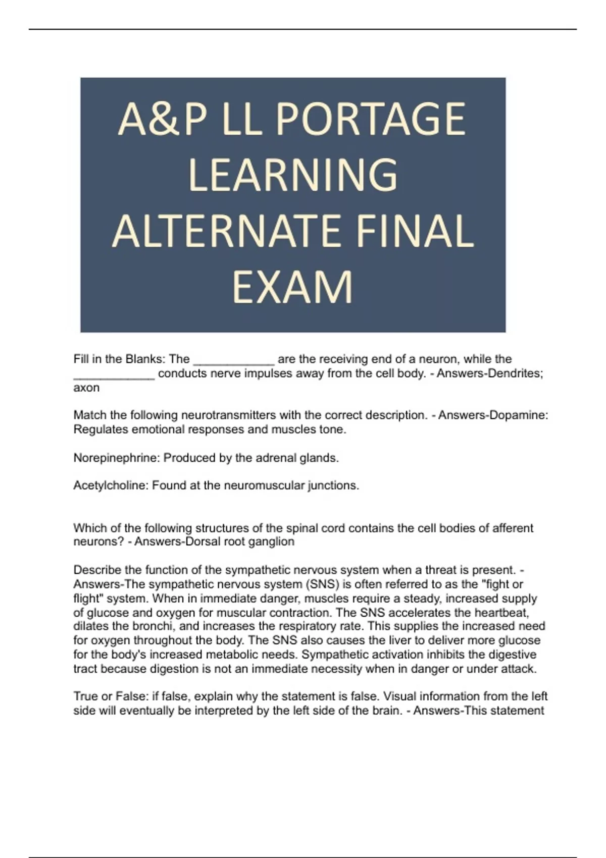 A&P LL PORTAGE LEARNING ALTERNATE FINAL EXAM