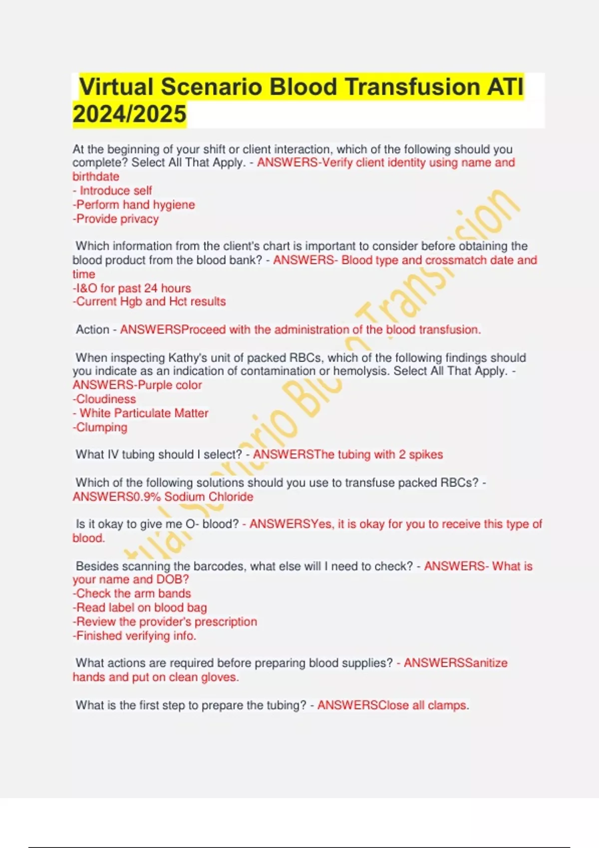 Action - ANSWERSProceed with the administration of the blood transfusion.