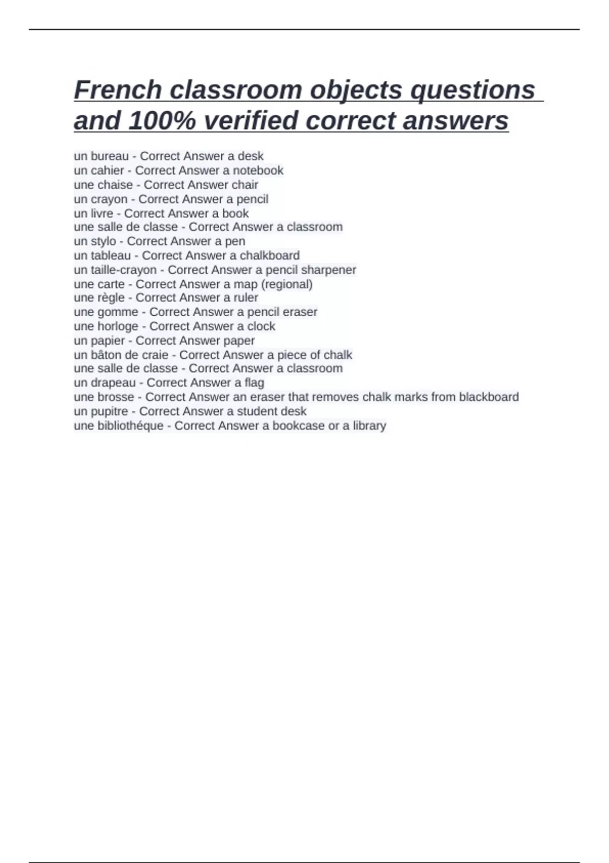 un papier - Correct Answer paper