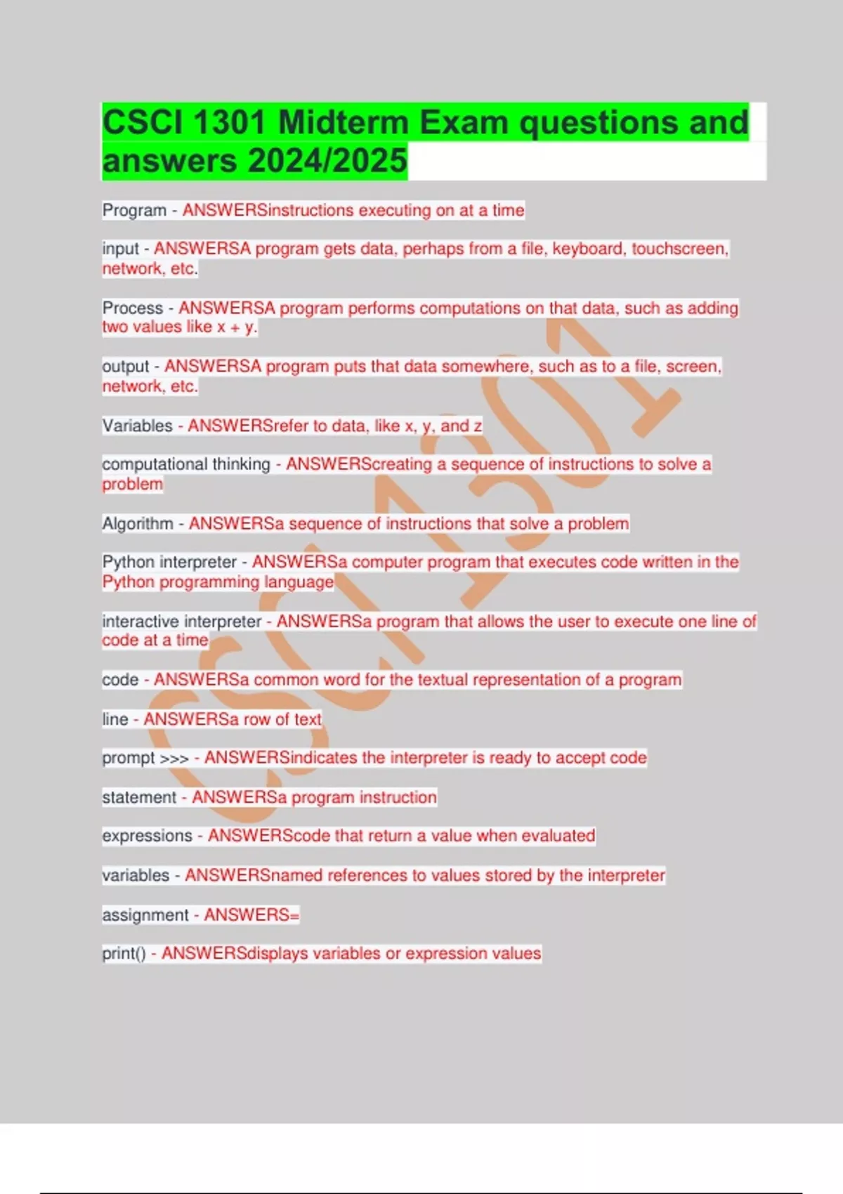 print() - ANSWERSdisplays variables or expression values