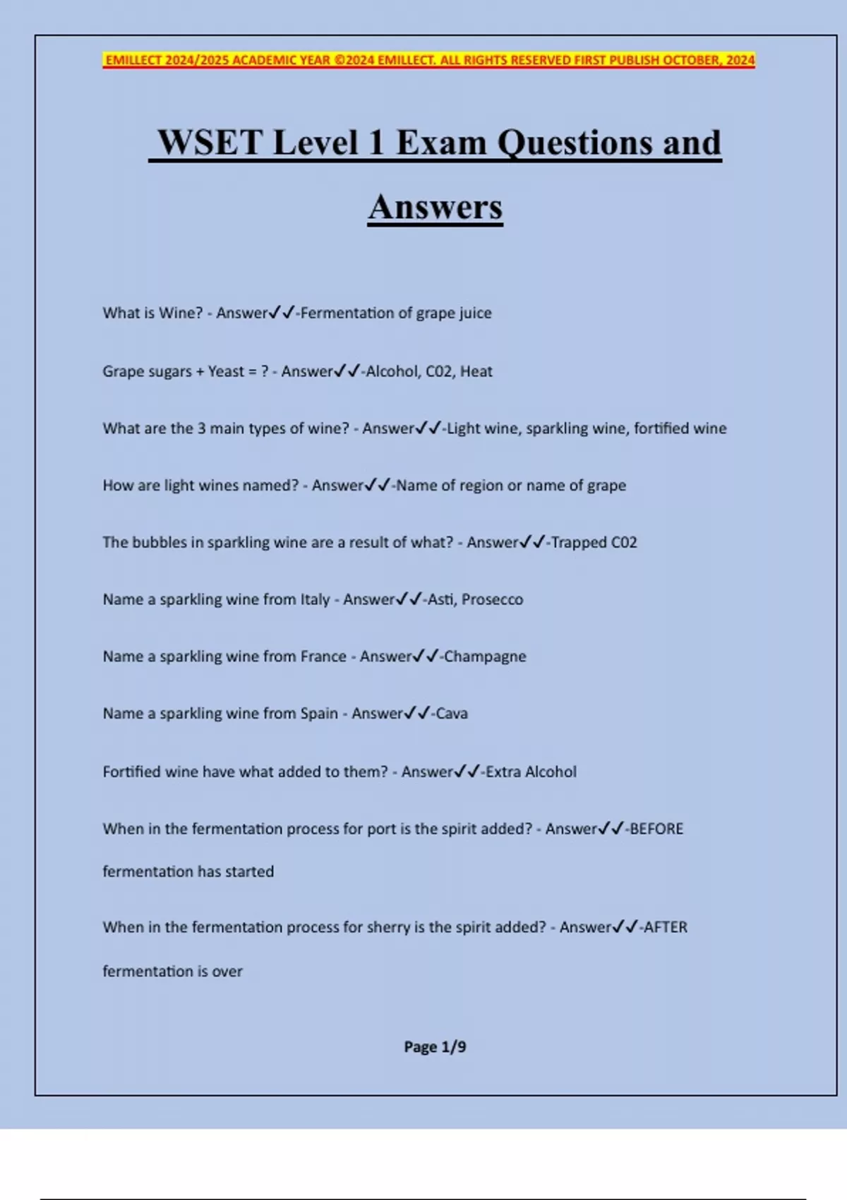 WSET Level 1 Exam Questions and