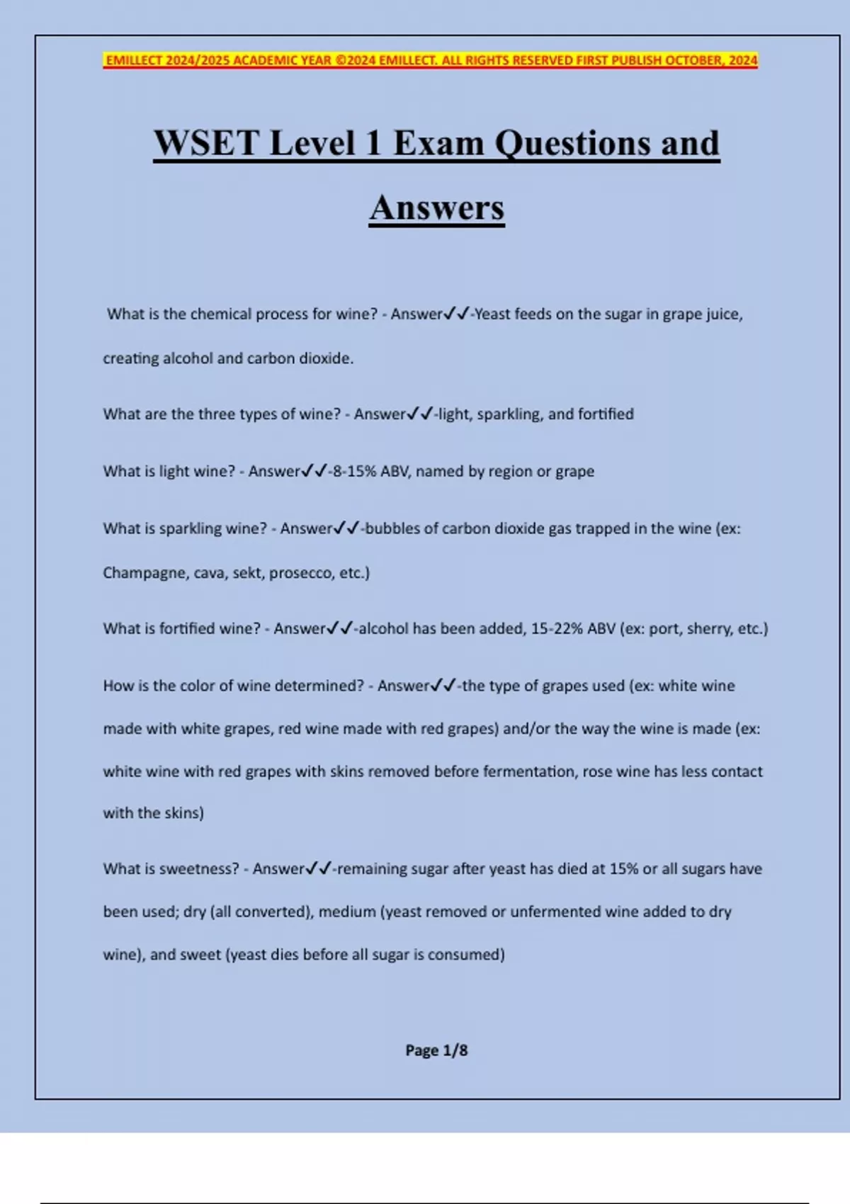 WSET Level 1 Exam Questions and