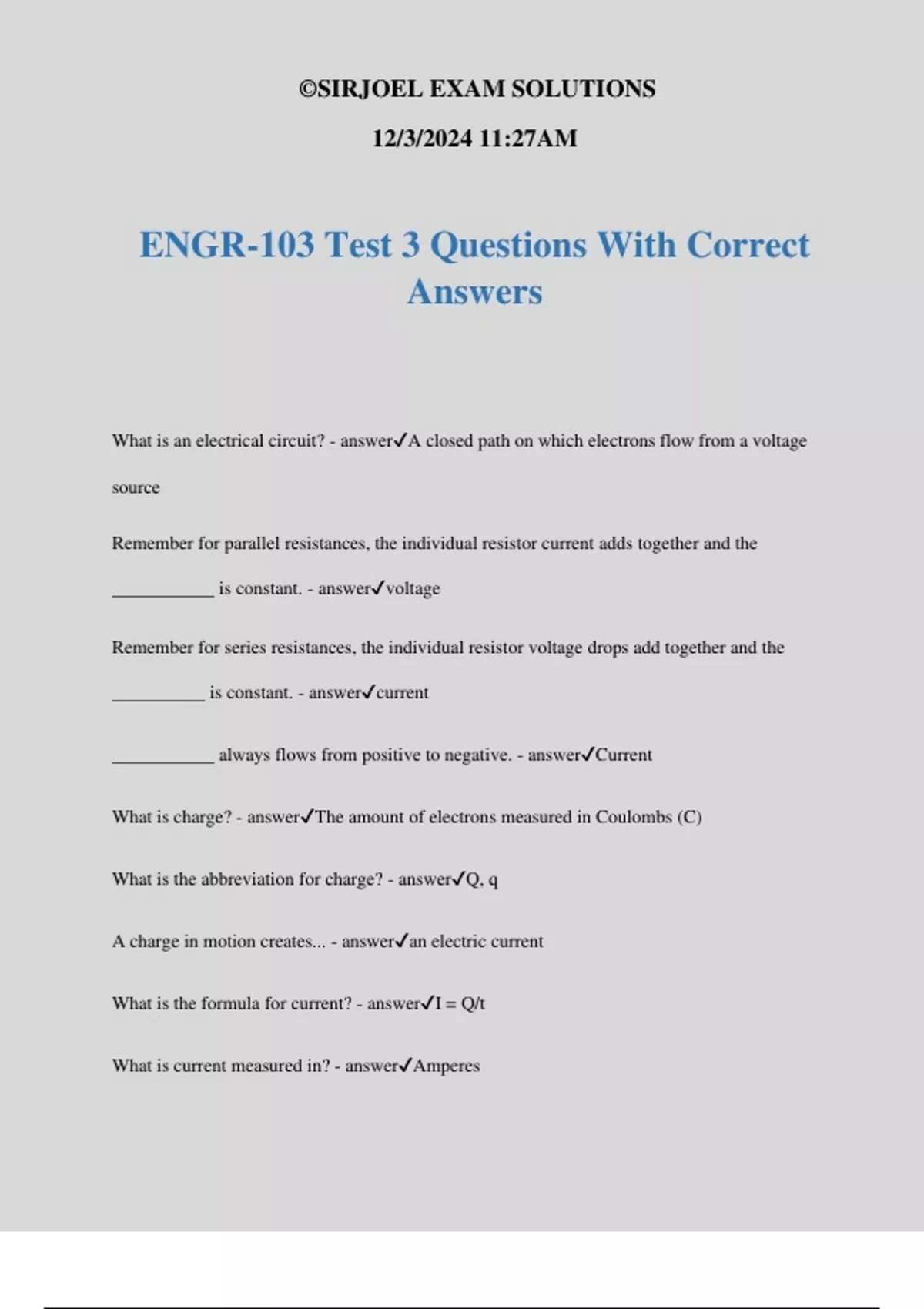 What is an electrical circuit? - answer✔A closed path on which electrons flow from a voltage
