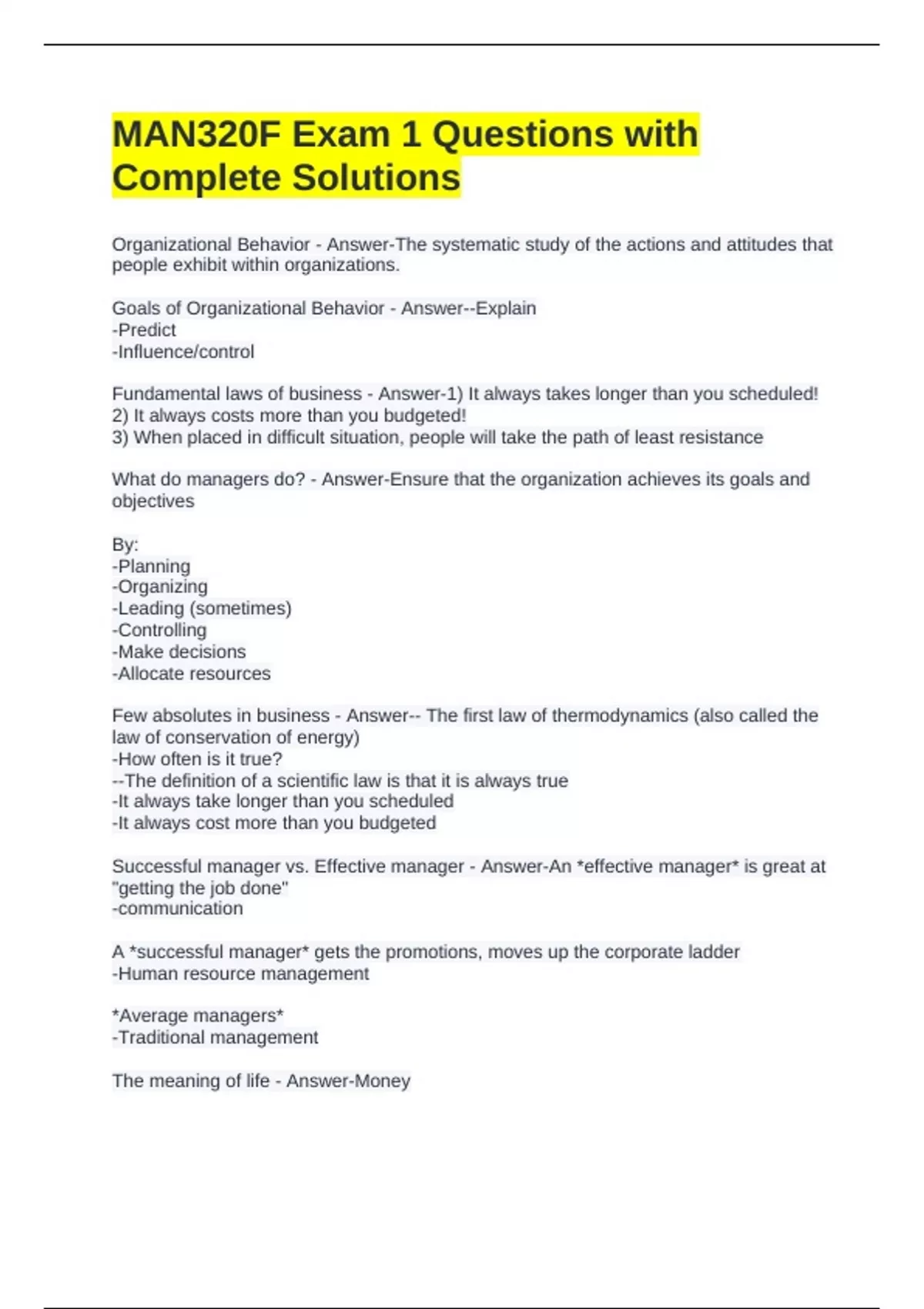 Fundamental laws of business - Answer-1) It always takes longer than you scheduled!