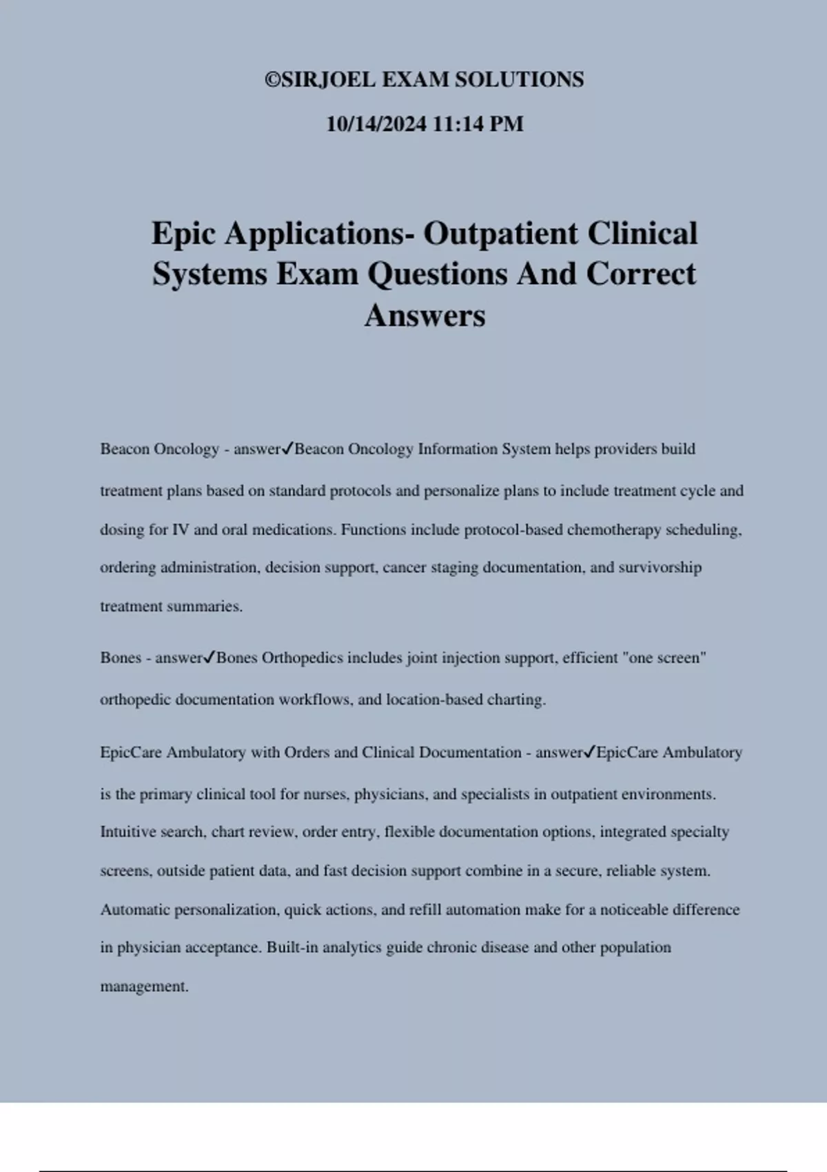 EpicCare Ambulatory with Orders and Clinical Documentation - answer✔EpicCare Ambulatory