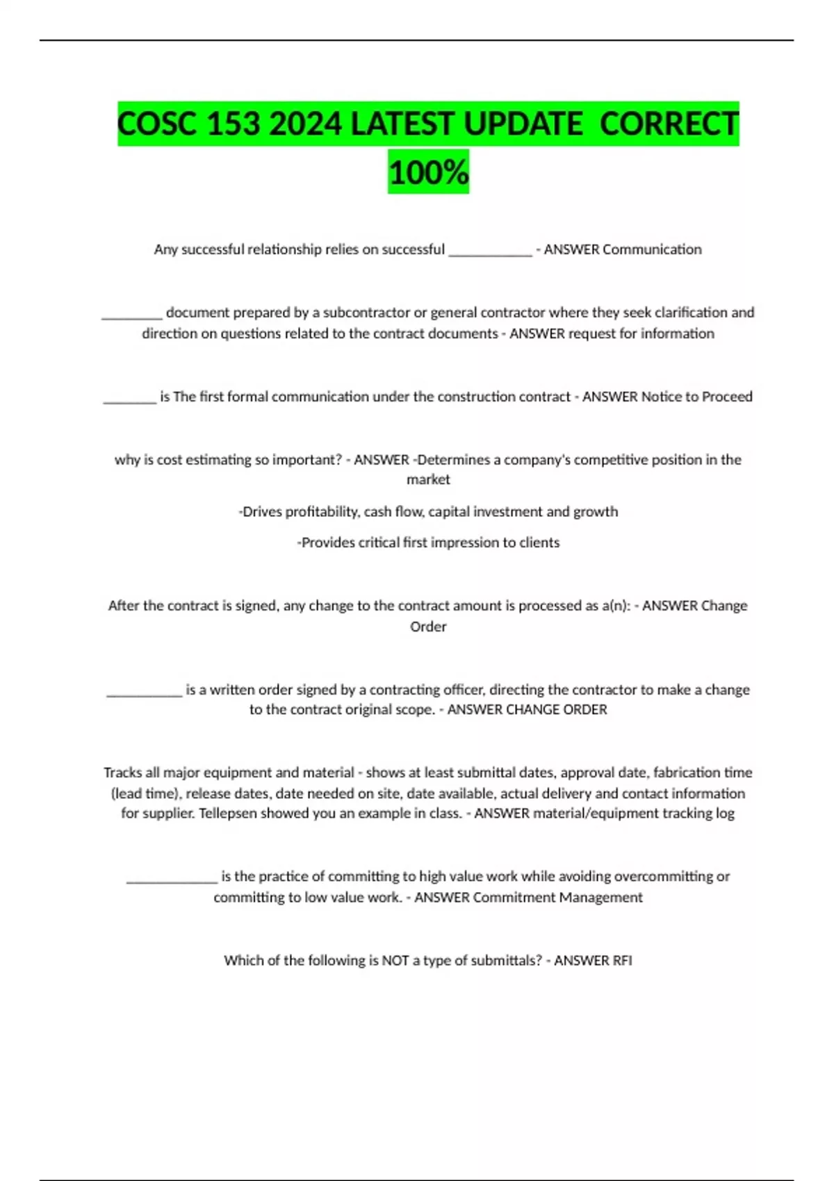 to the contract original scope. - ANSWER CHANGE ORDER