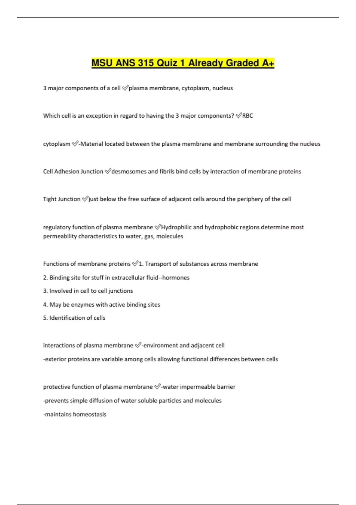 3 major components of a cell ✅plasma membrane, cytoplasm, nucleus