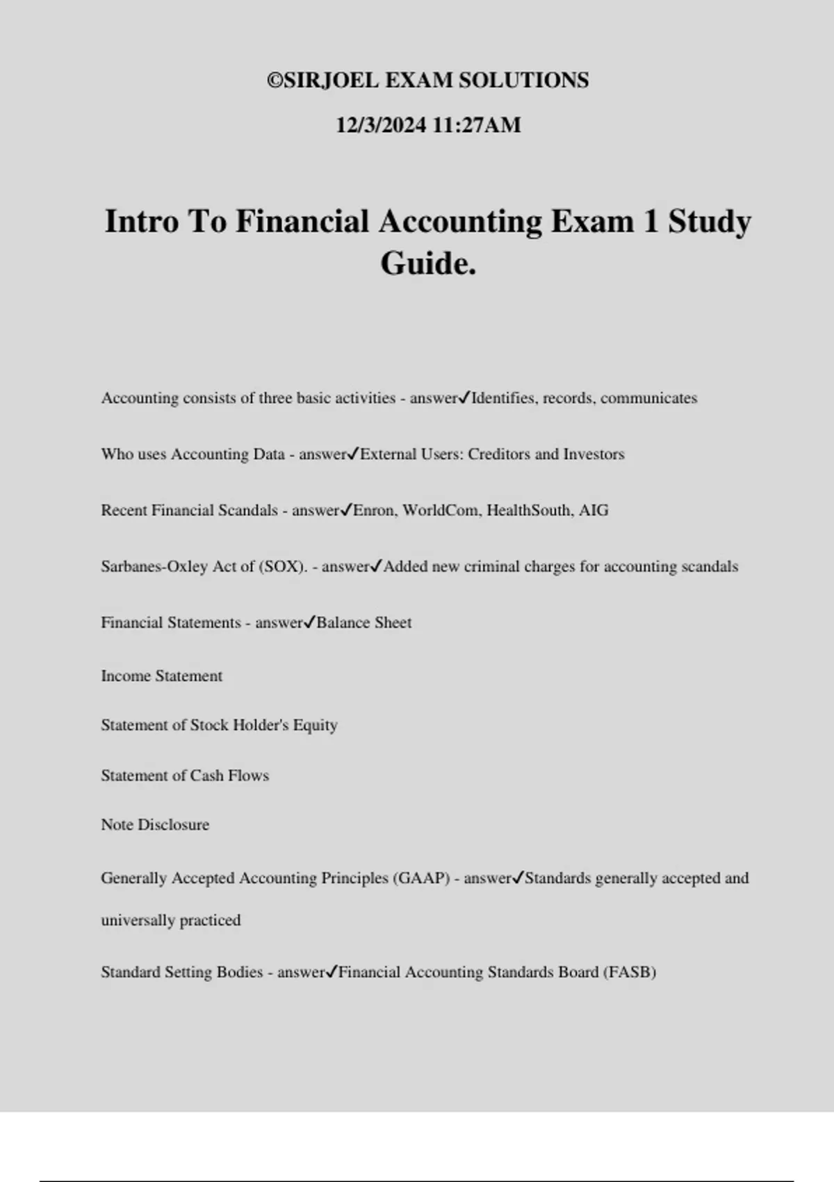 Generally Accepted Accounting Principles (GAAP) - answer✔Standards generally accepted and