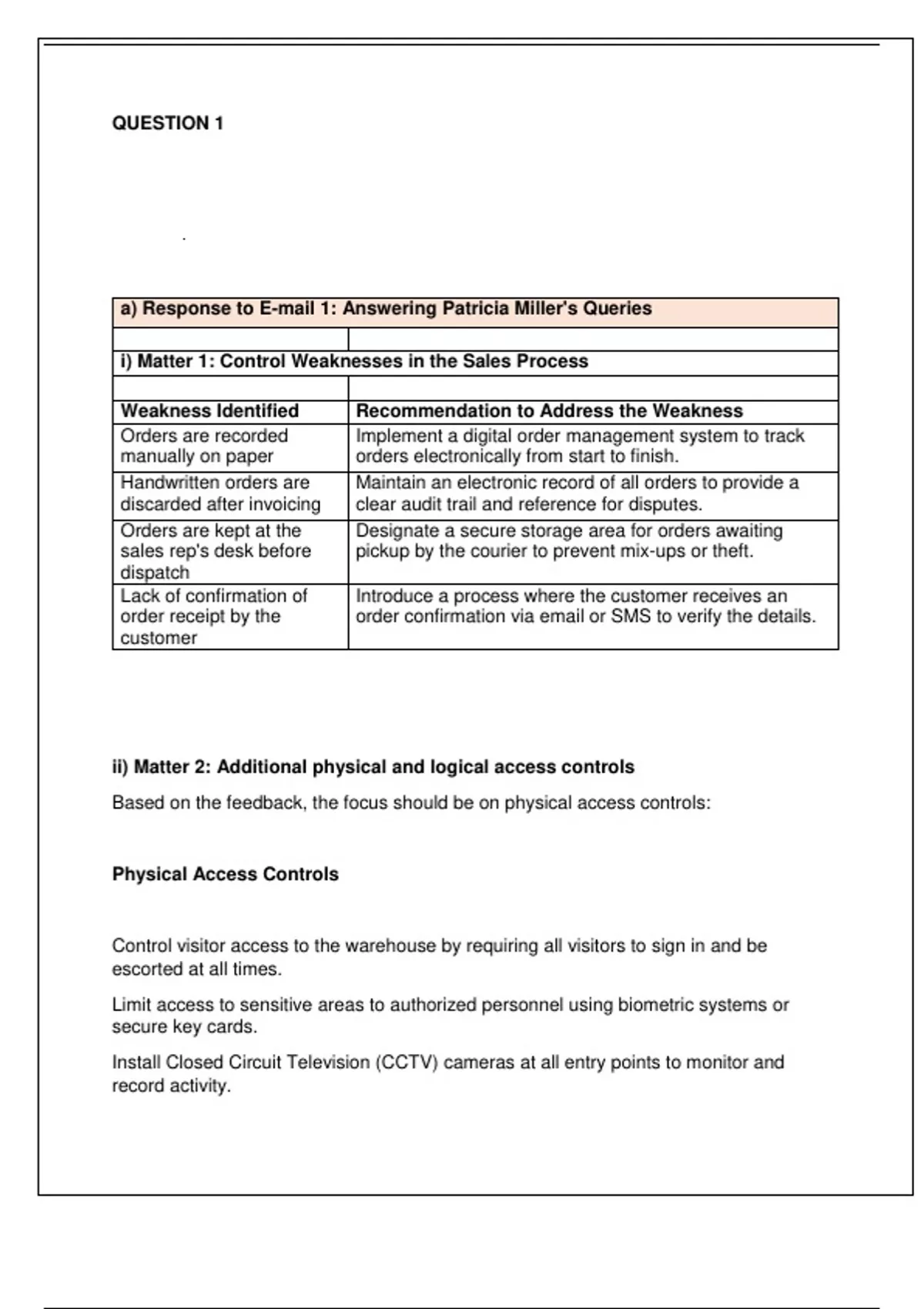 ii) Matter 2: Additional physical and logical access controls