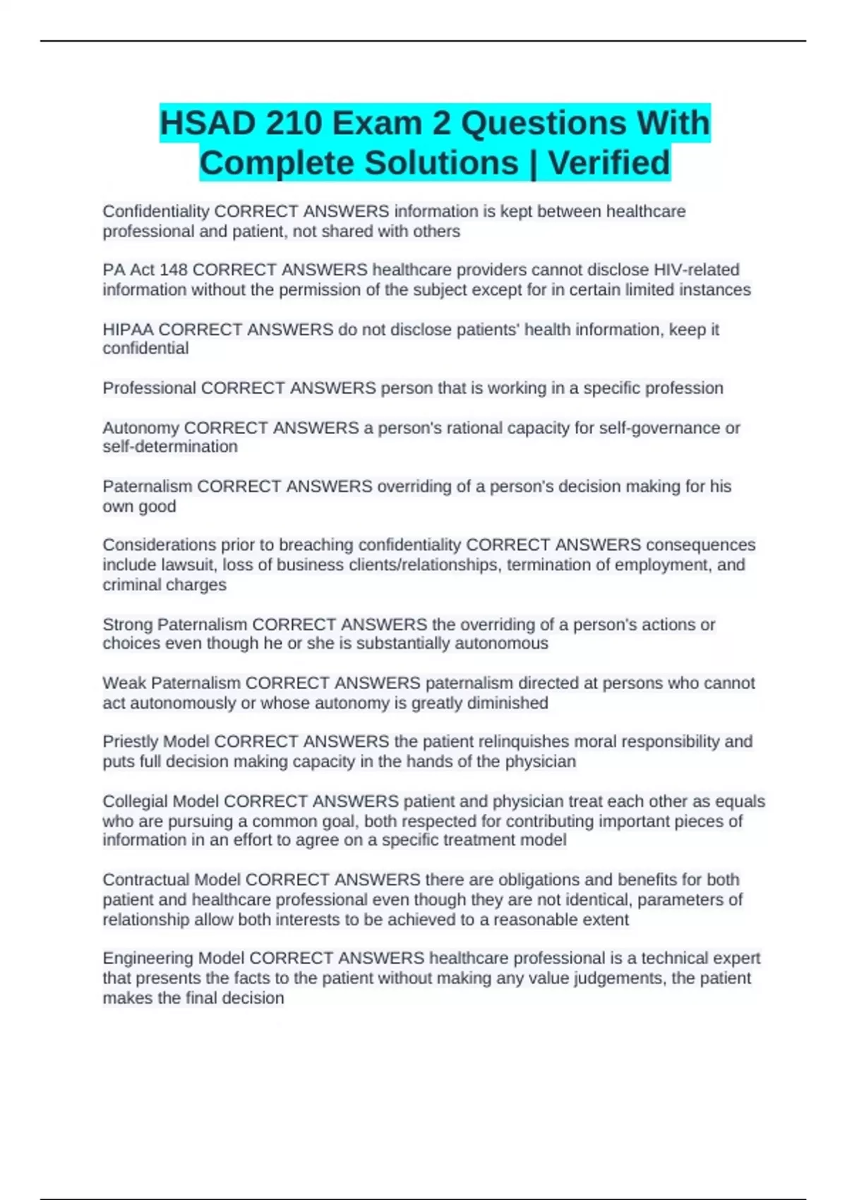 HSAD 210 Exam 2 Questions With Complete Solutions | Verified