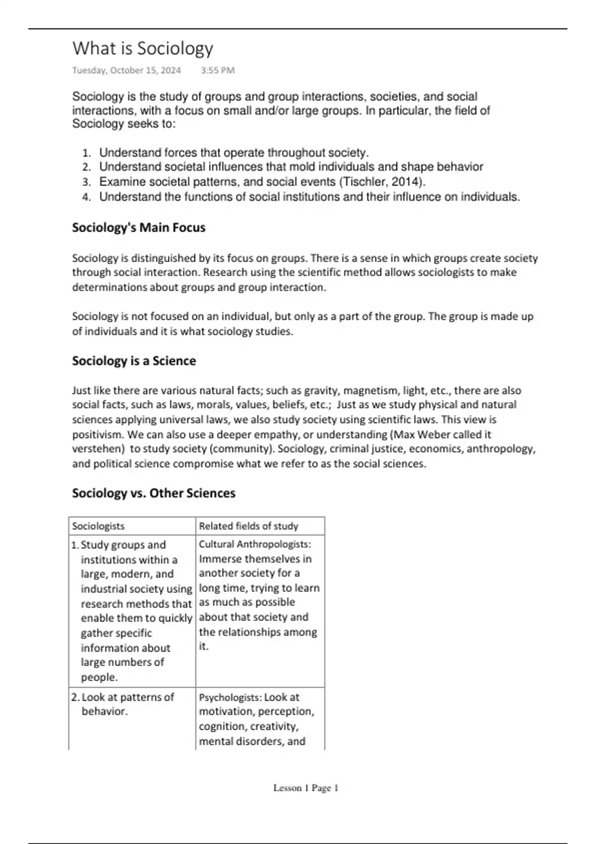 Sociology is not focused on an individual, but only as a part of the group. The group is made up
