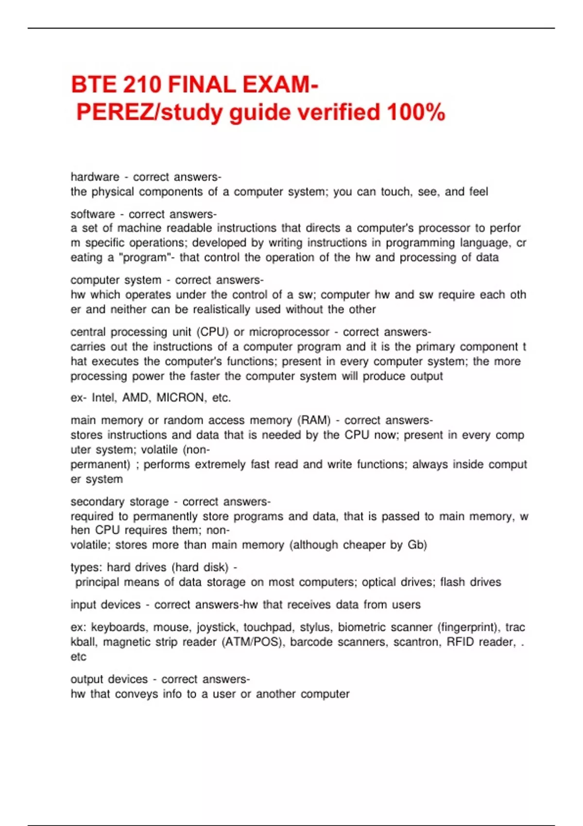 PEREZ/study guide verified 100%