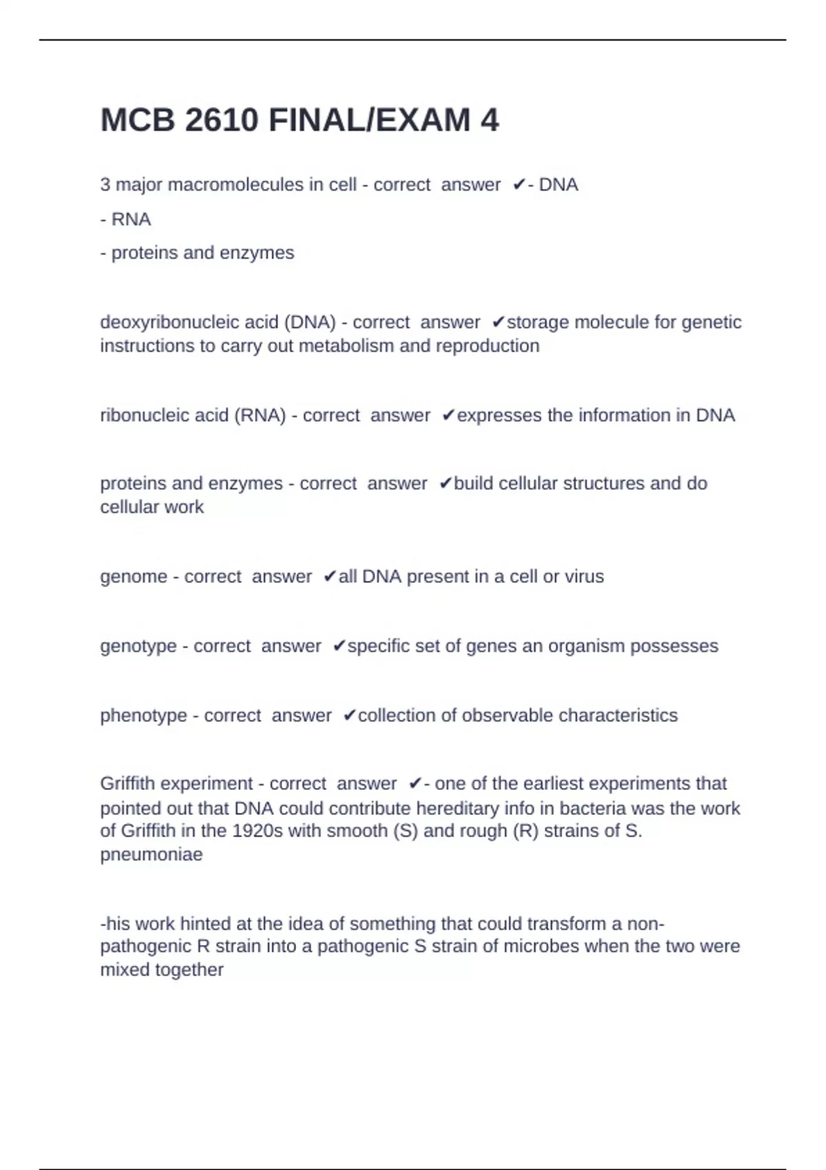 deoxyribonucleic acid (DNA) - correct answer ✔storage molecule for genetic