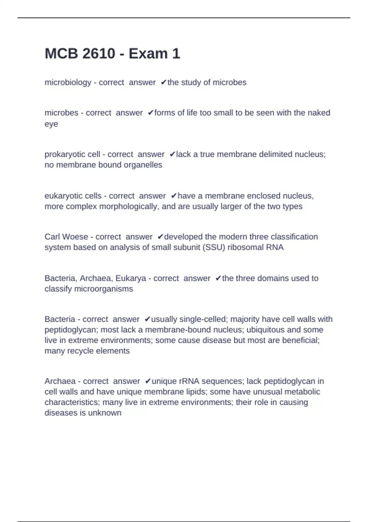 Bacteria - correct answer ✔usually single-celled; majority have cell walls with