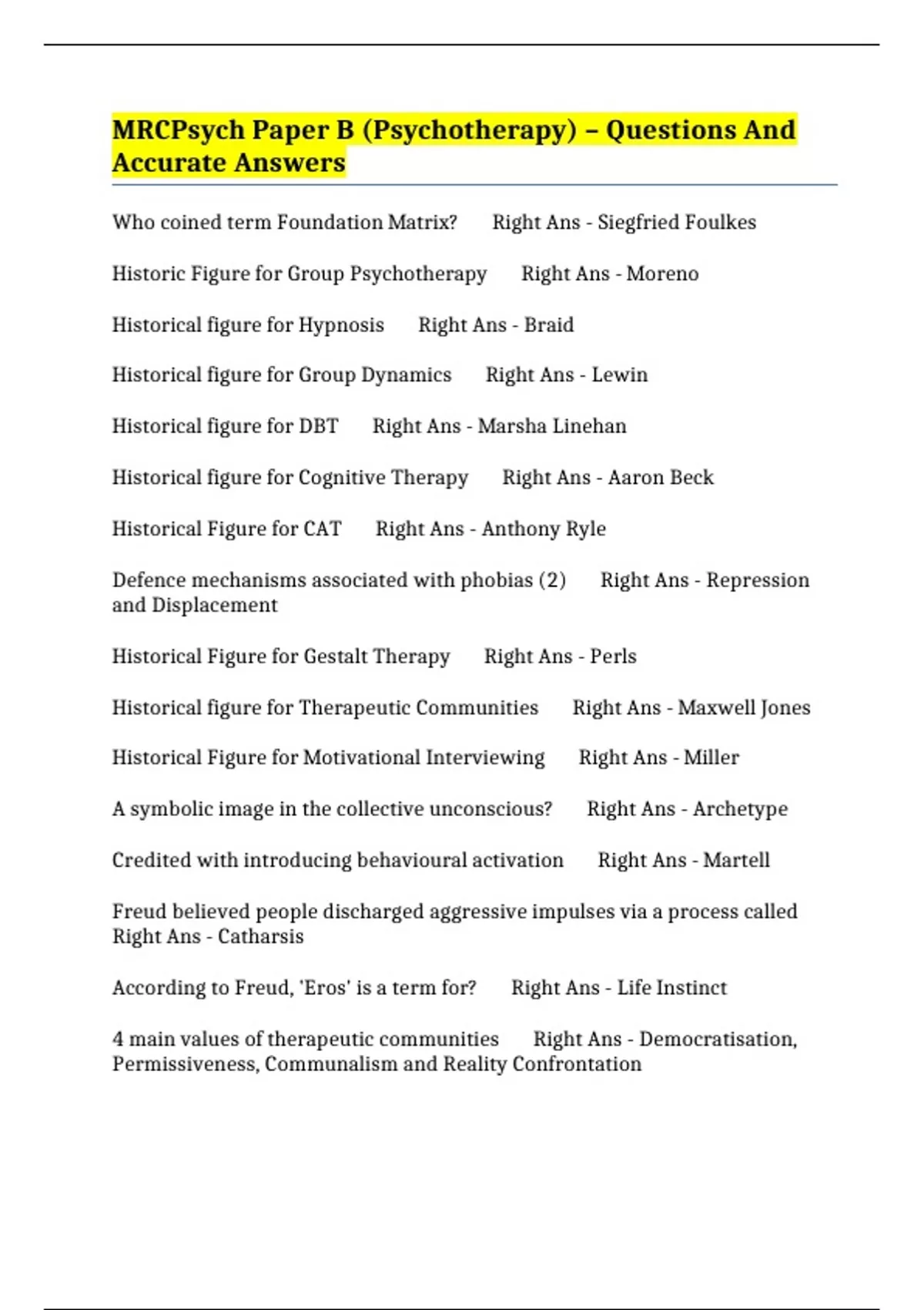 Anthony Ryle credited with development of which therapy? Right Ans -