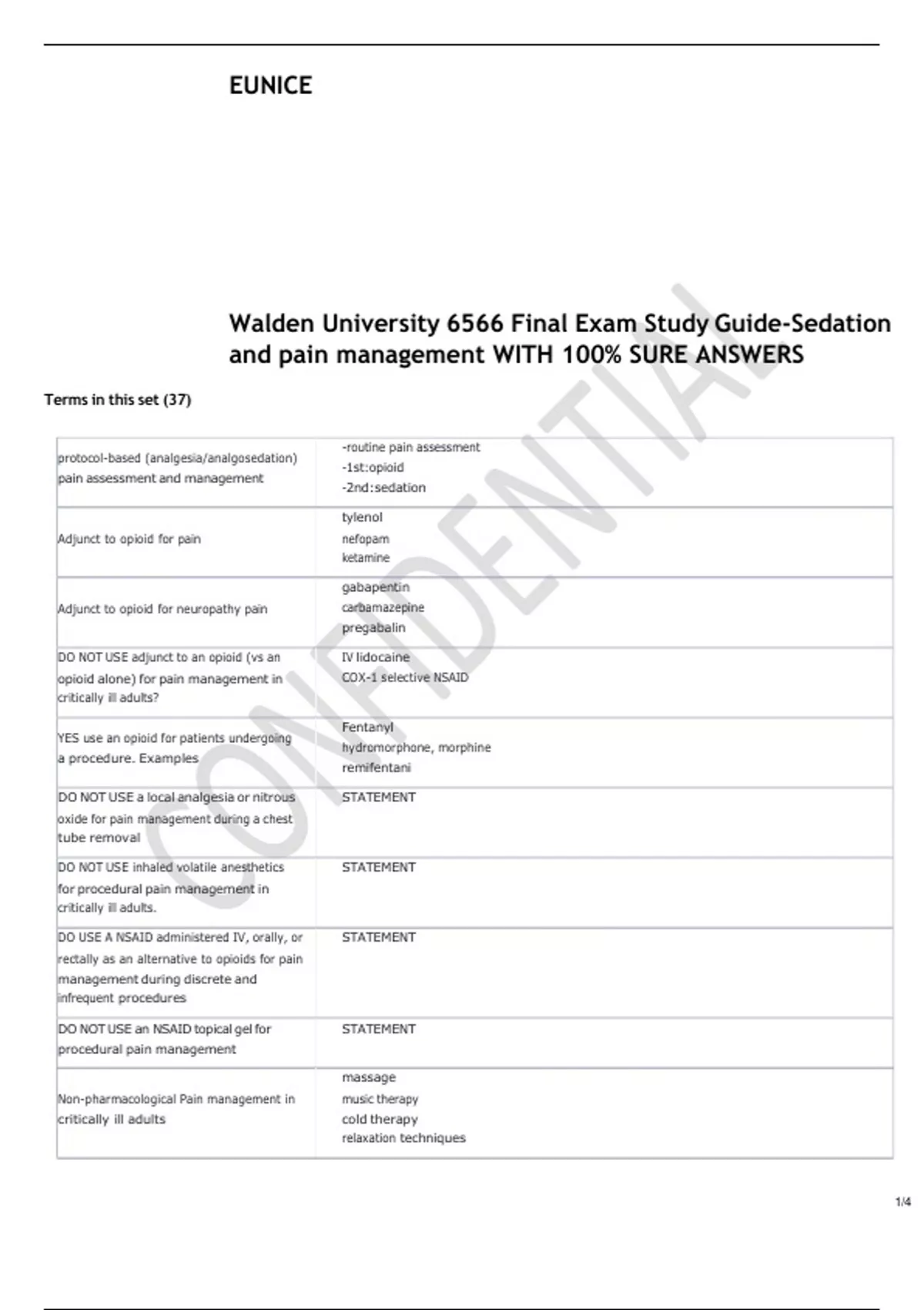 Walden University 6566 Final Exam Study Guide-Sedation