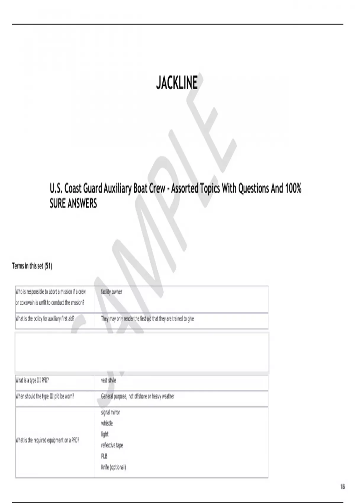 U.S. Coast Guard Auxiliary Boat Crew - Assorted Topics With Questions And 100%