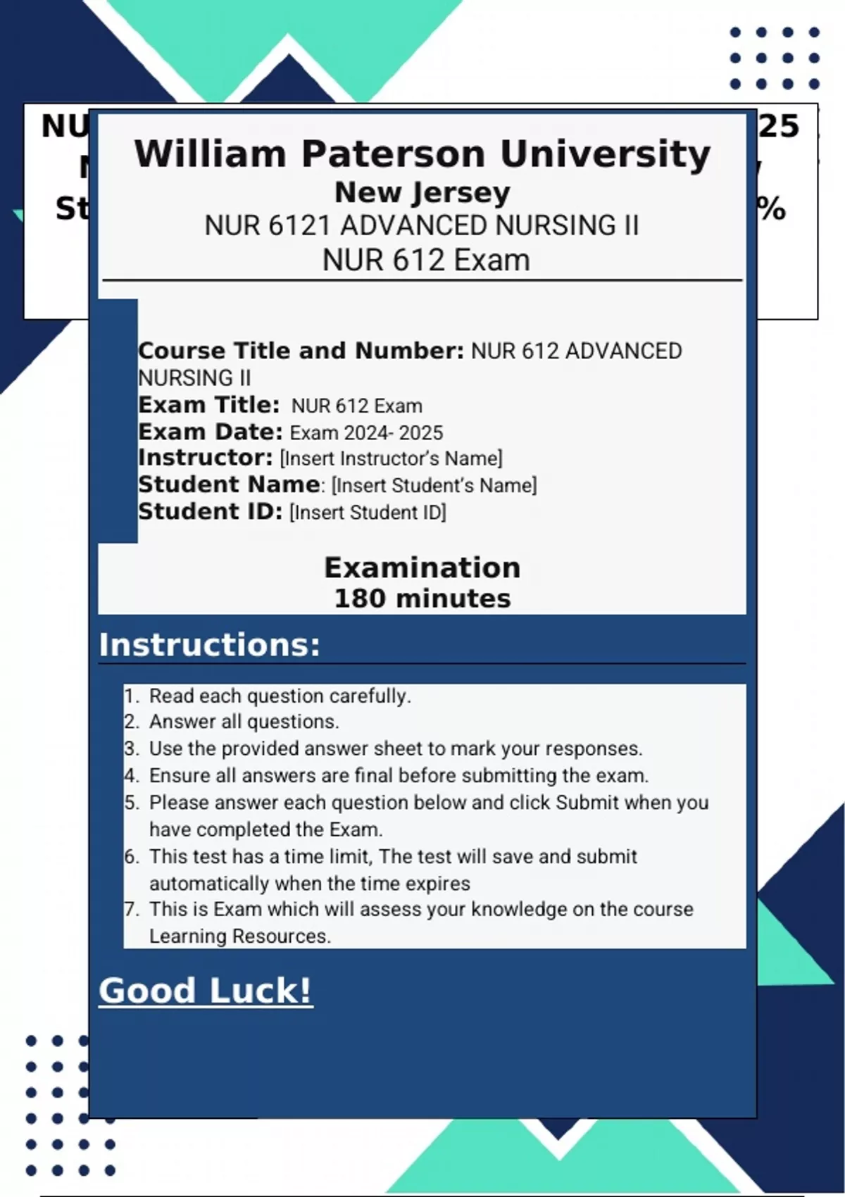 Exam Title: NUR 612 Exam