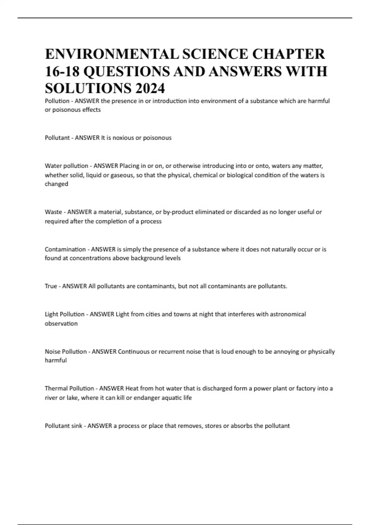 Pollutant - ANSWER It is noxious or poisonous