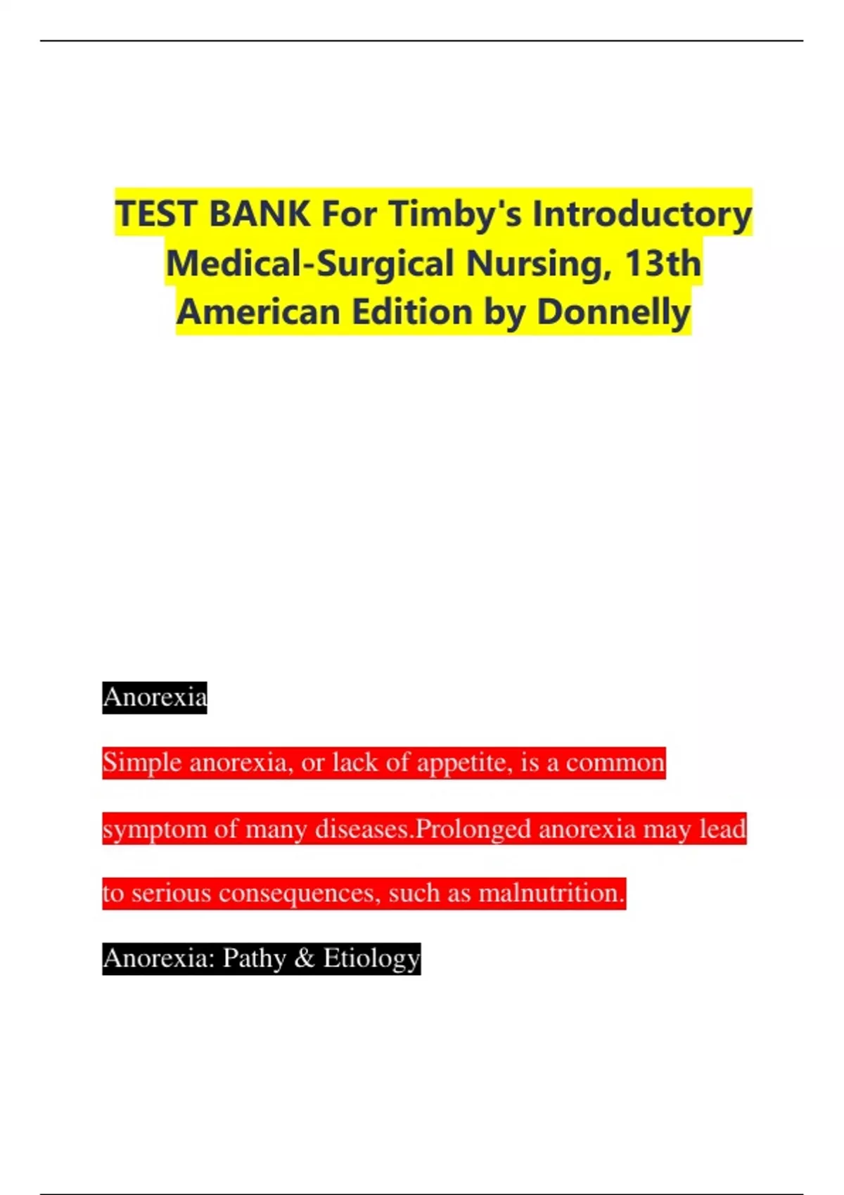 TEST BANK For Timby's Introductory Medical-Surgical Nursing, 13th American Edition by Donnelly