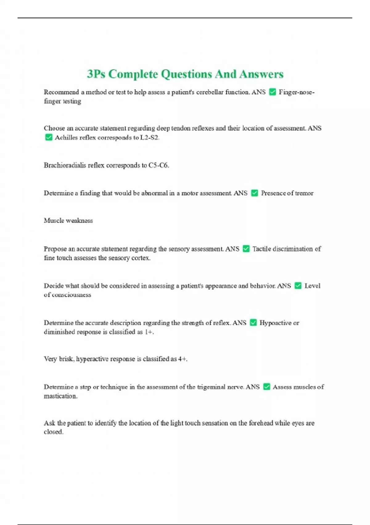 3Ps Complete Questions And Answers With Verified Study Solutions 2024/2025 Updates