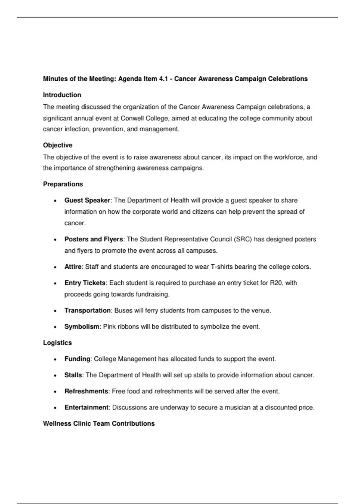Minutes of the Meeting: Agenda Item 4.1 - Cancer Awareness Campaign Celebrations