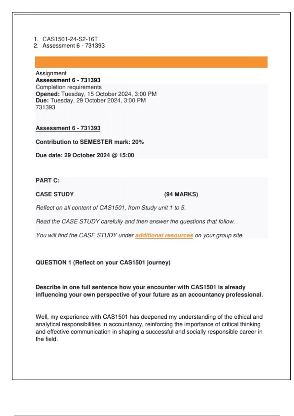 QUESTION 1 (Reflect on your CAS1501 journey)