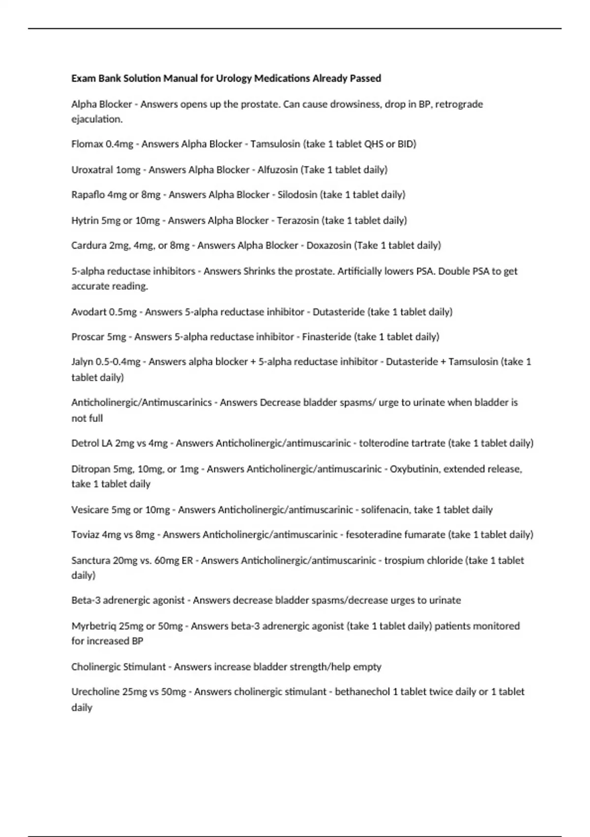Anticholinergic/Antimuscarinics - Answers Decrease bladder spasms/ urge to urinate when bladder is