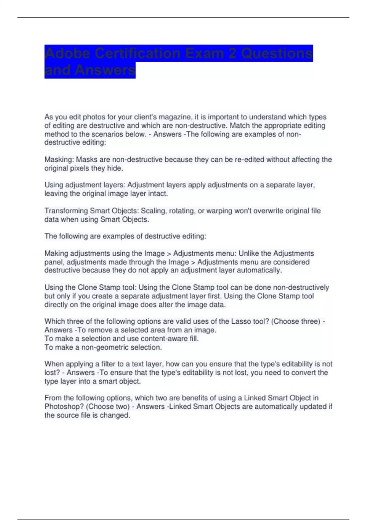 Adobe Certification Exam 2 Questions
