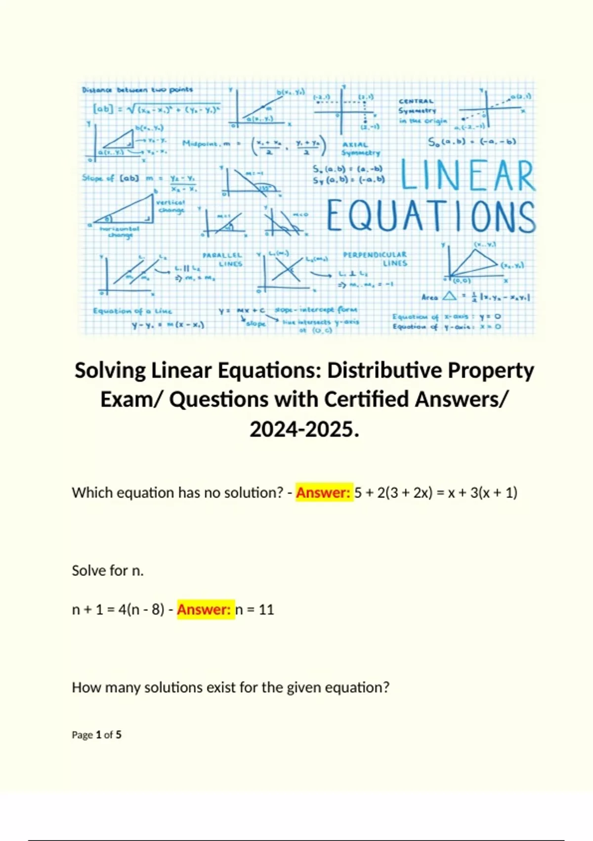 Which equation has no solution? - Answer: 5 + 2(3 + 2x) = x + 3(x + 1)