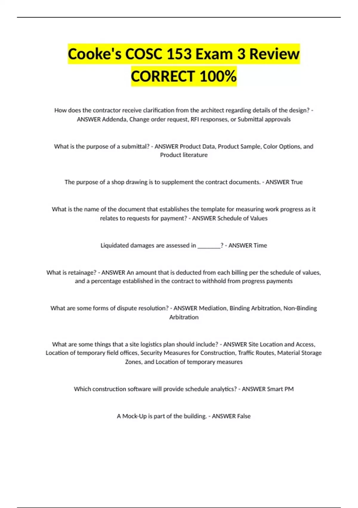 Cooke's COSC 153 Exam 3 Review CORRECT 100%