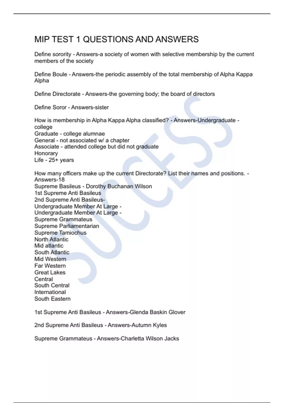 MIP TEST 1 QUESTIONS AND ANSWERS