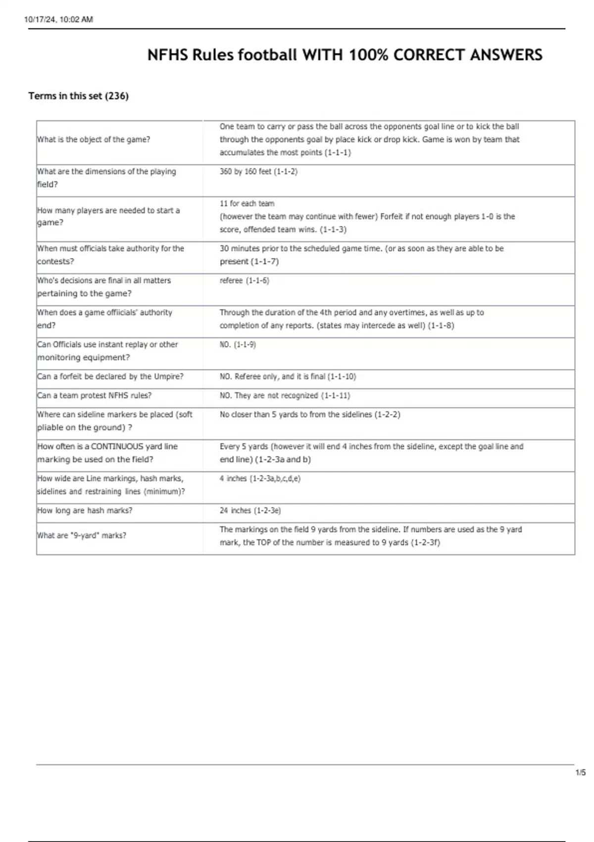 NFHS Rules football WITH 100- CORRECT ANSWERSNFHS Rules football WITH 100- CORRECT ANSWERS