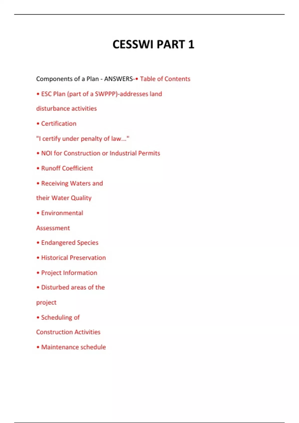 CESSWI PART 1 QUESTIONS AND ANSWERS 2024