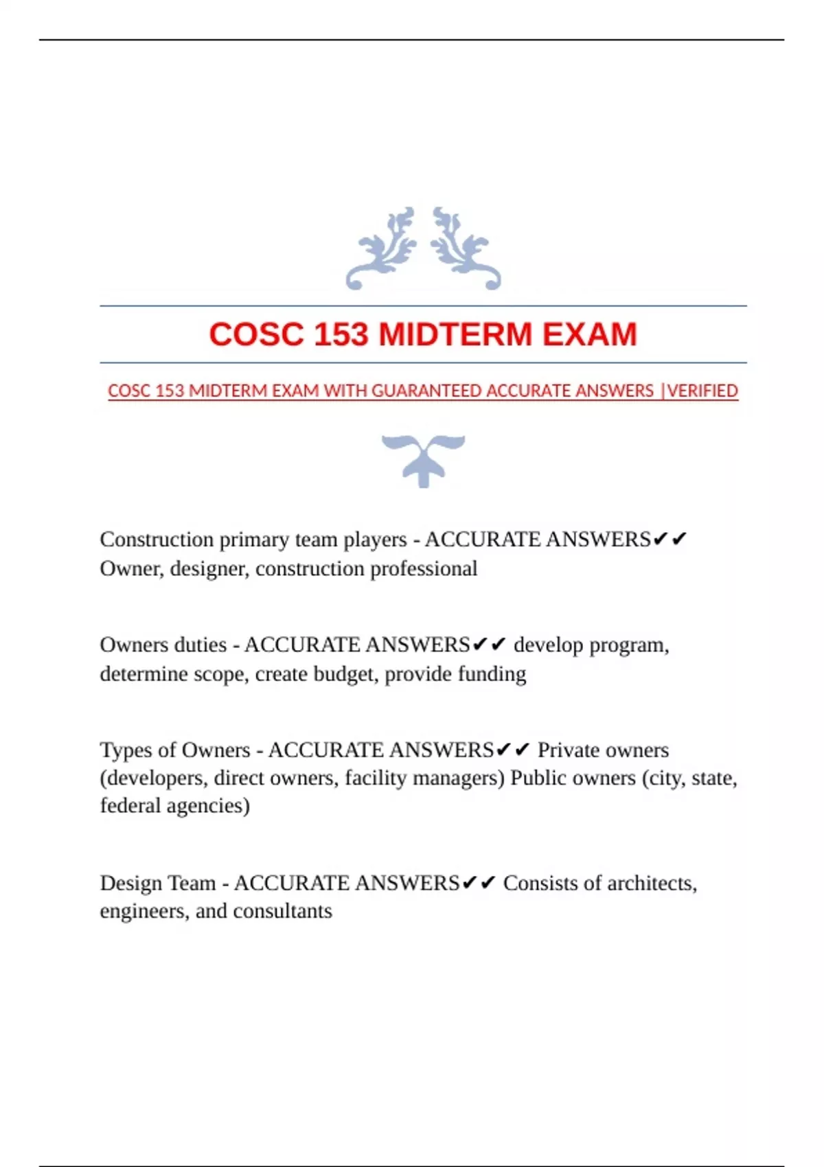 COSC 153 MIDTERM EXAM WITH GUARANTEED ACCURATE ANSWERS |VERIFIED