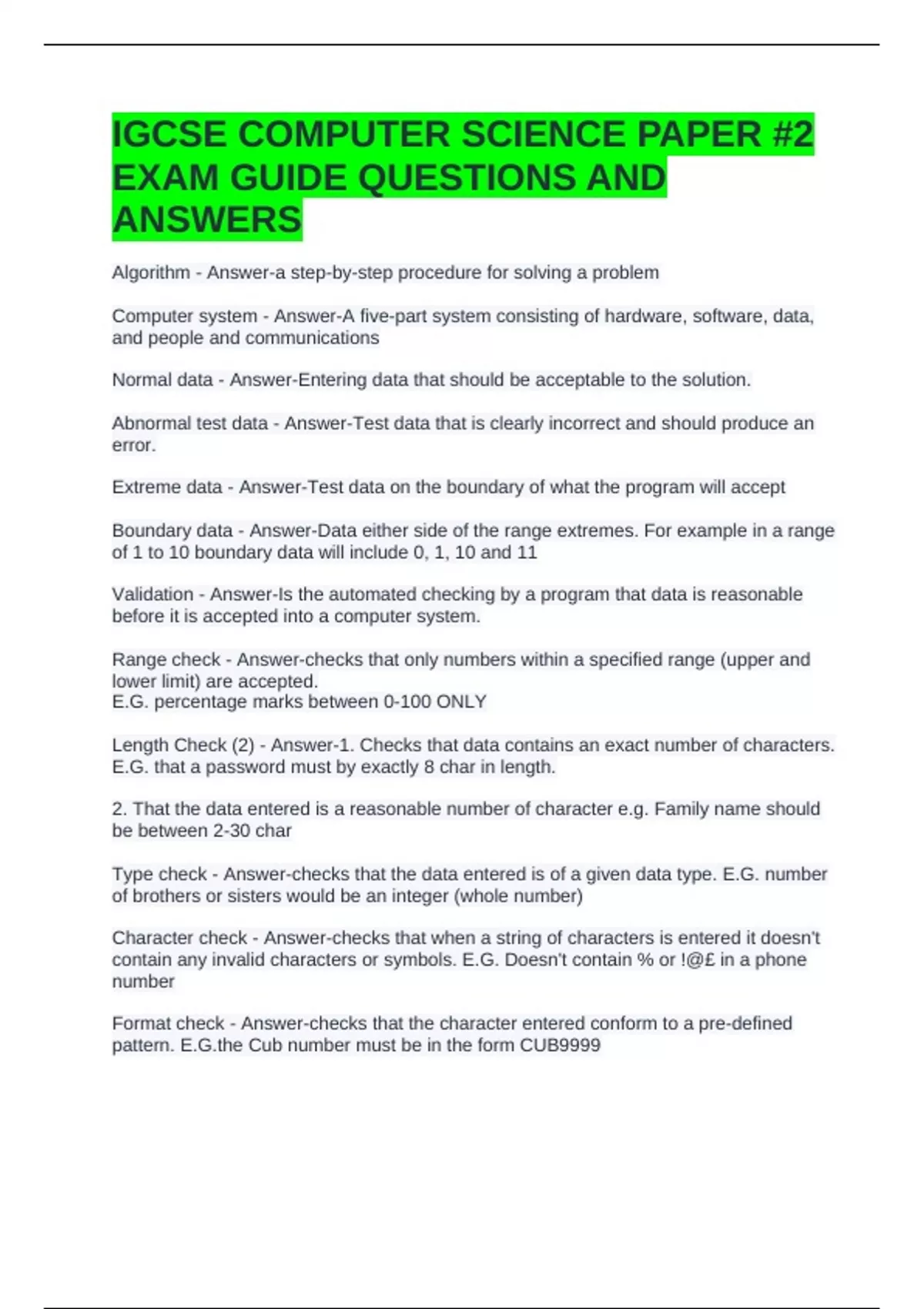 IGCSE COMPUTER SCIENCE PAPER #2 EXAM GUIDE QUESTIONS AND ANSWERS
