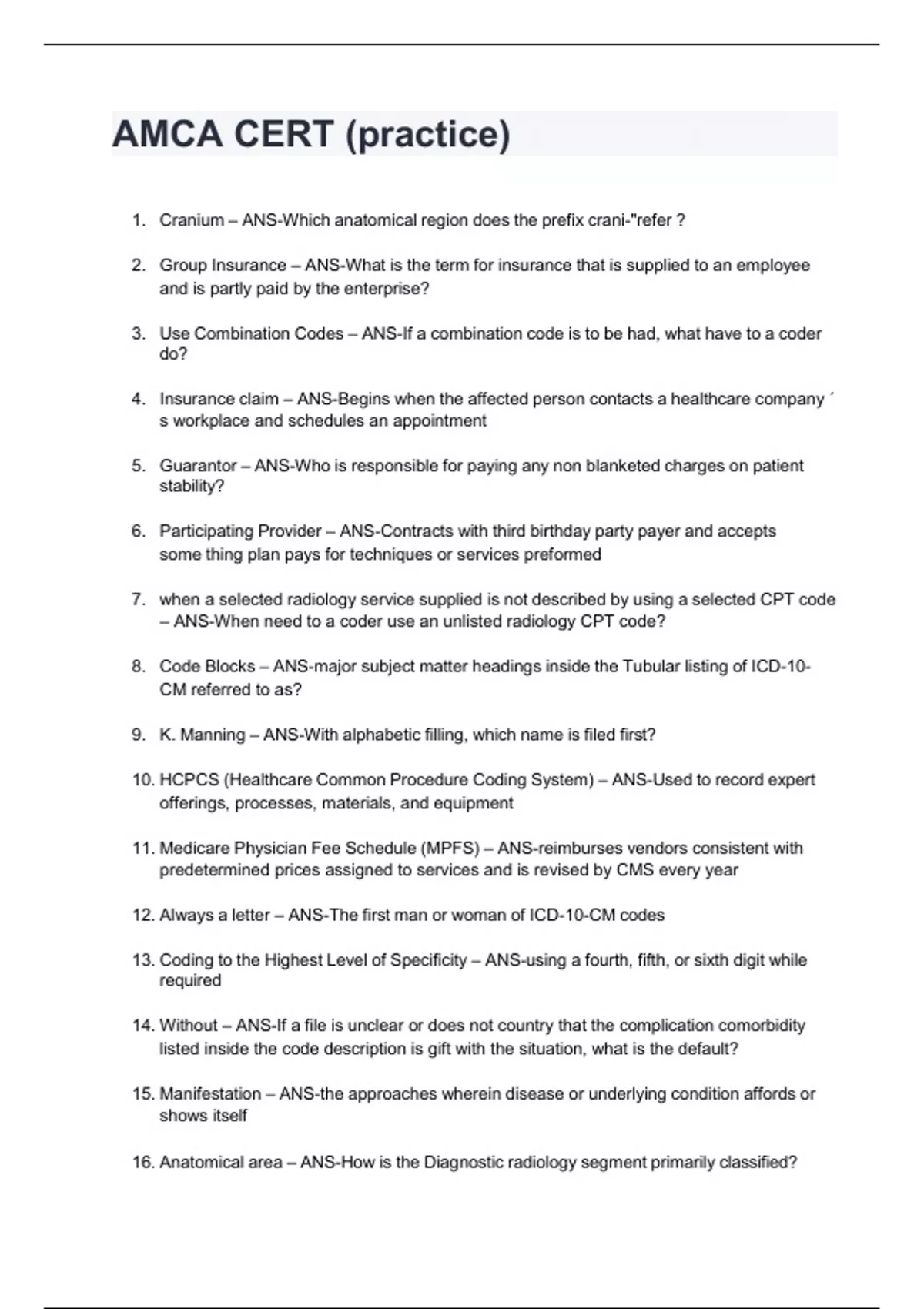 AMCA CERT (practice)