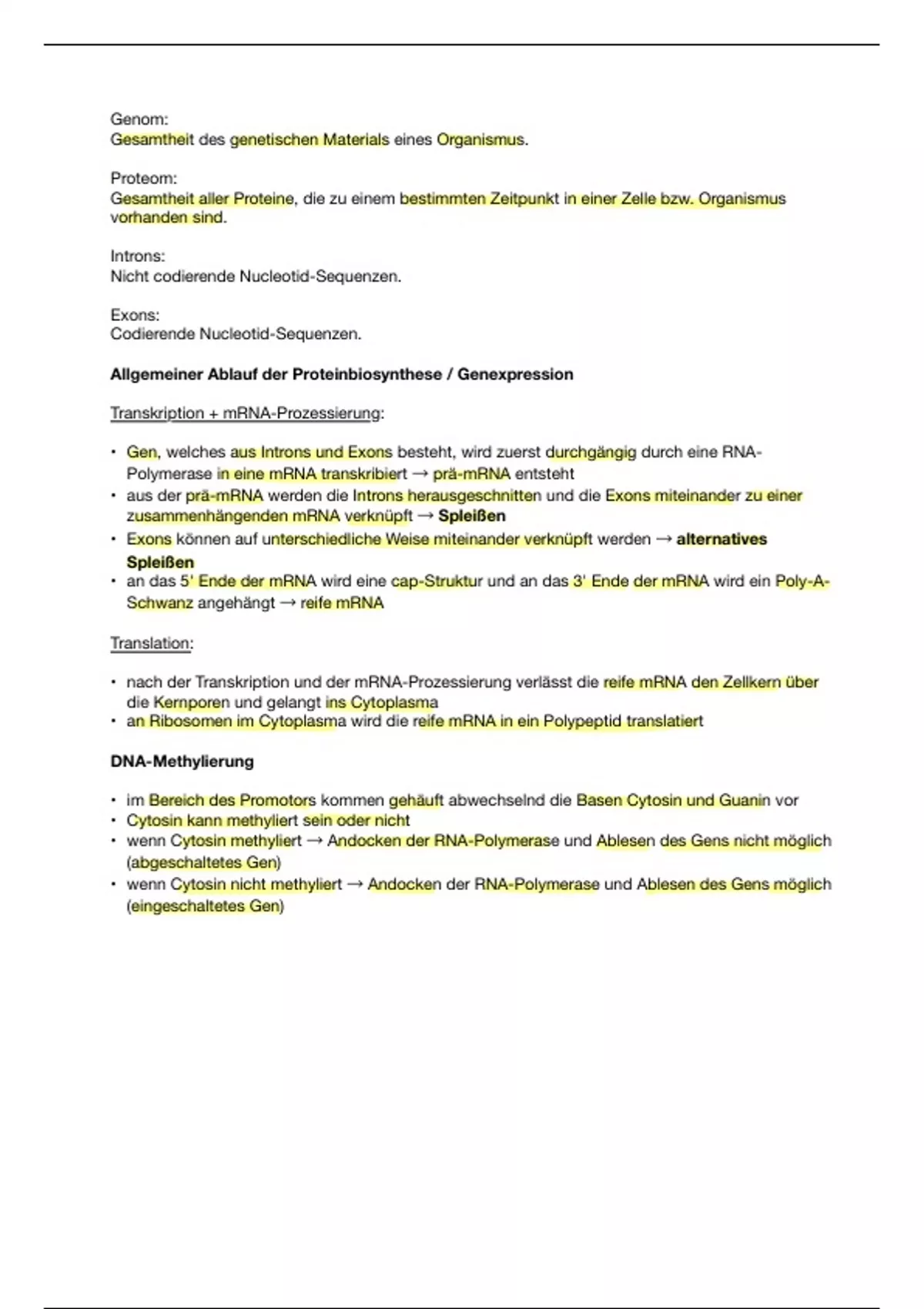 • aus der prä-mRNA werden die Introns herausgeschnitten und die Exons miteinander zu einer