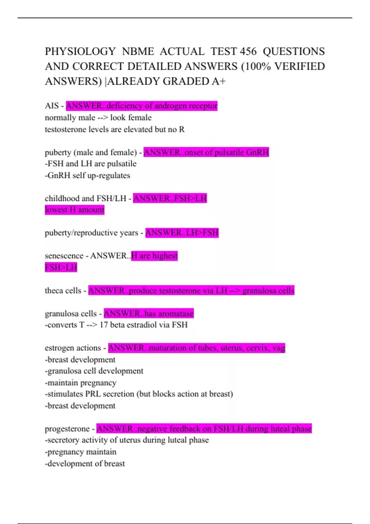 PHYSIOLOGY NBME ACTUAL TEST 456 QUESTIONS