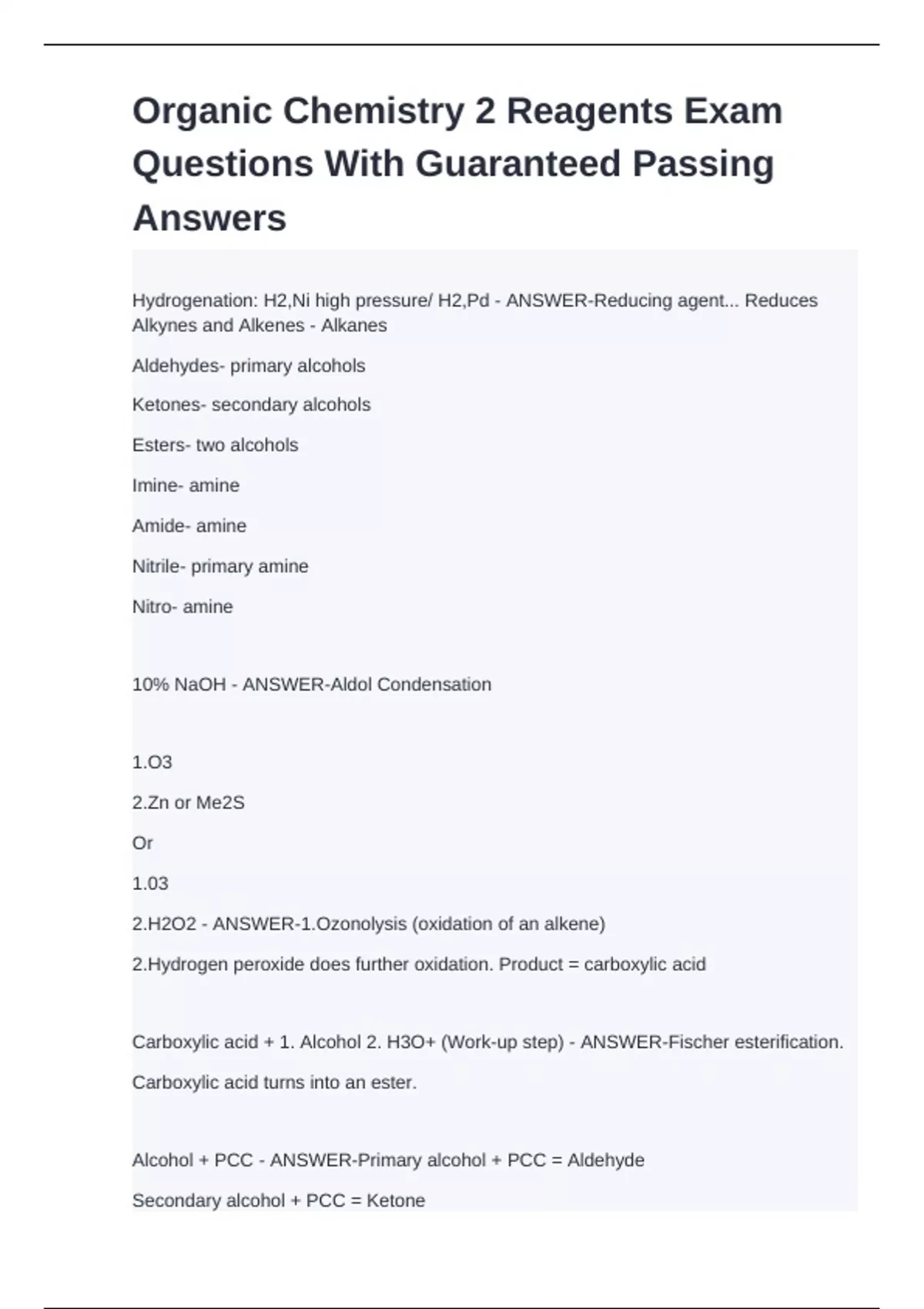 Alcohol + PCC - ANSWER-Primary alcohol + PCC = Aldehyde