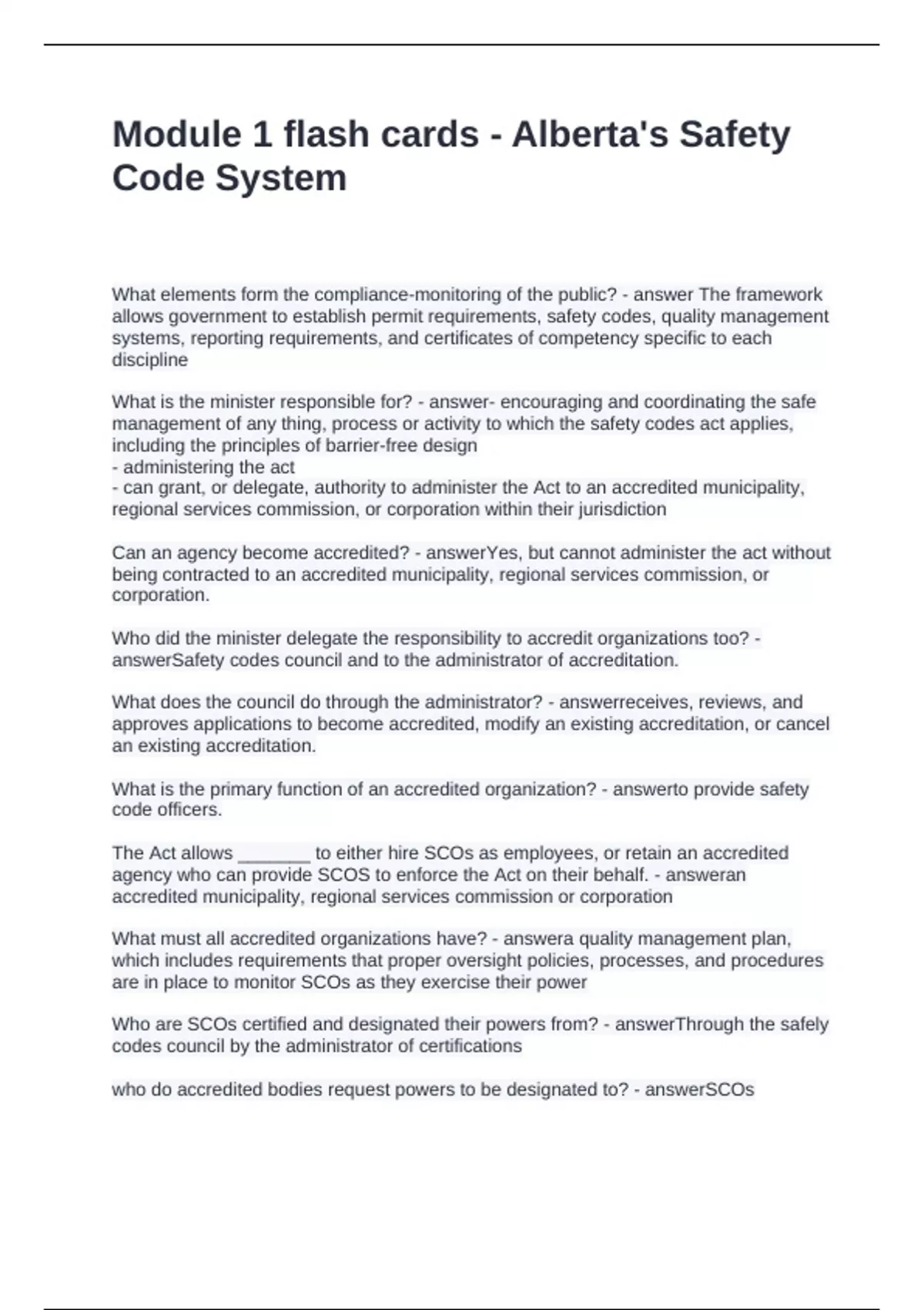 Module 1 flash cards - Alberta's Safety