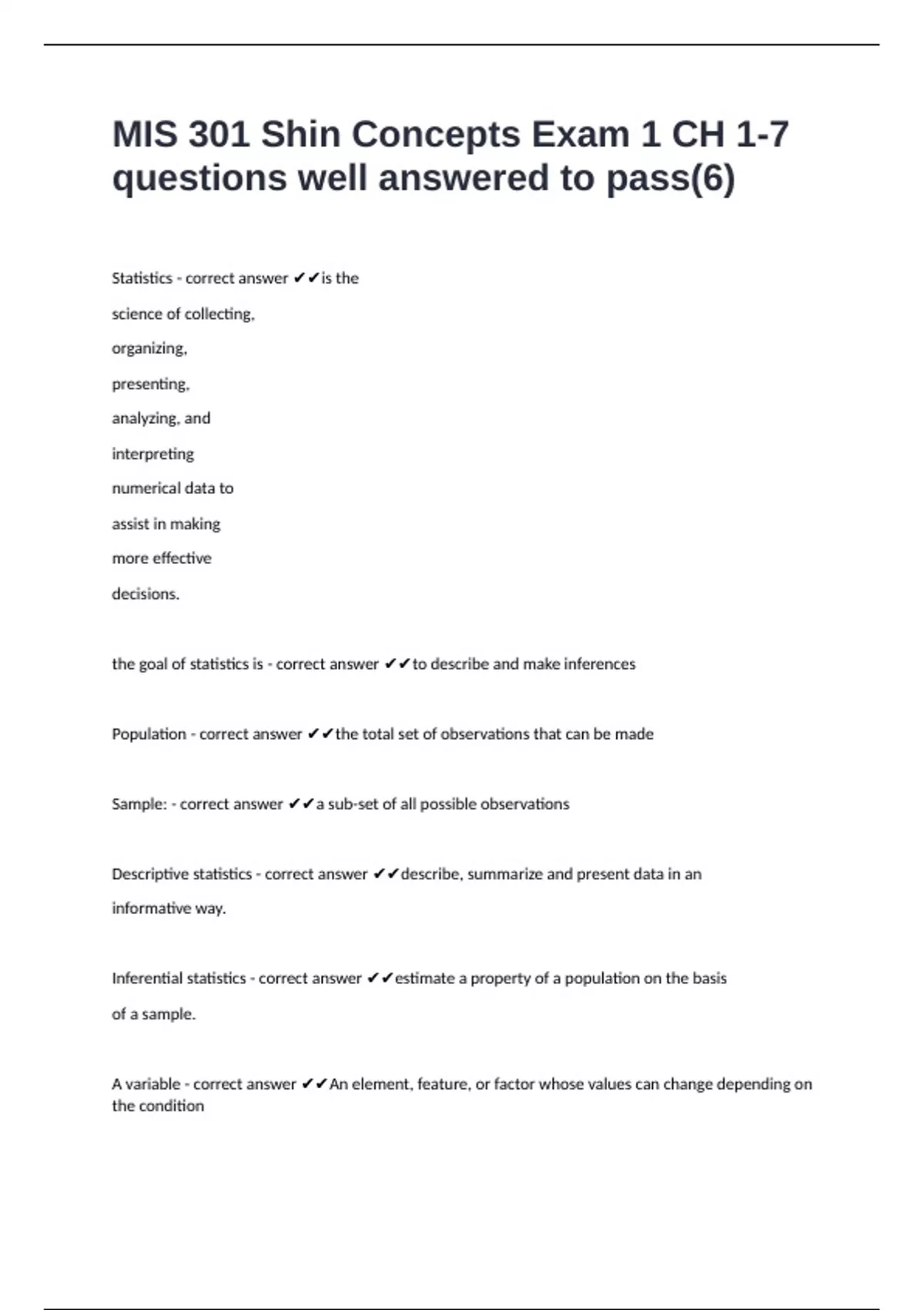 MIS 301 Shin Concepts Exam 1 CH 1-7 questions well answered to pass(6)