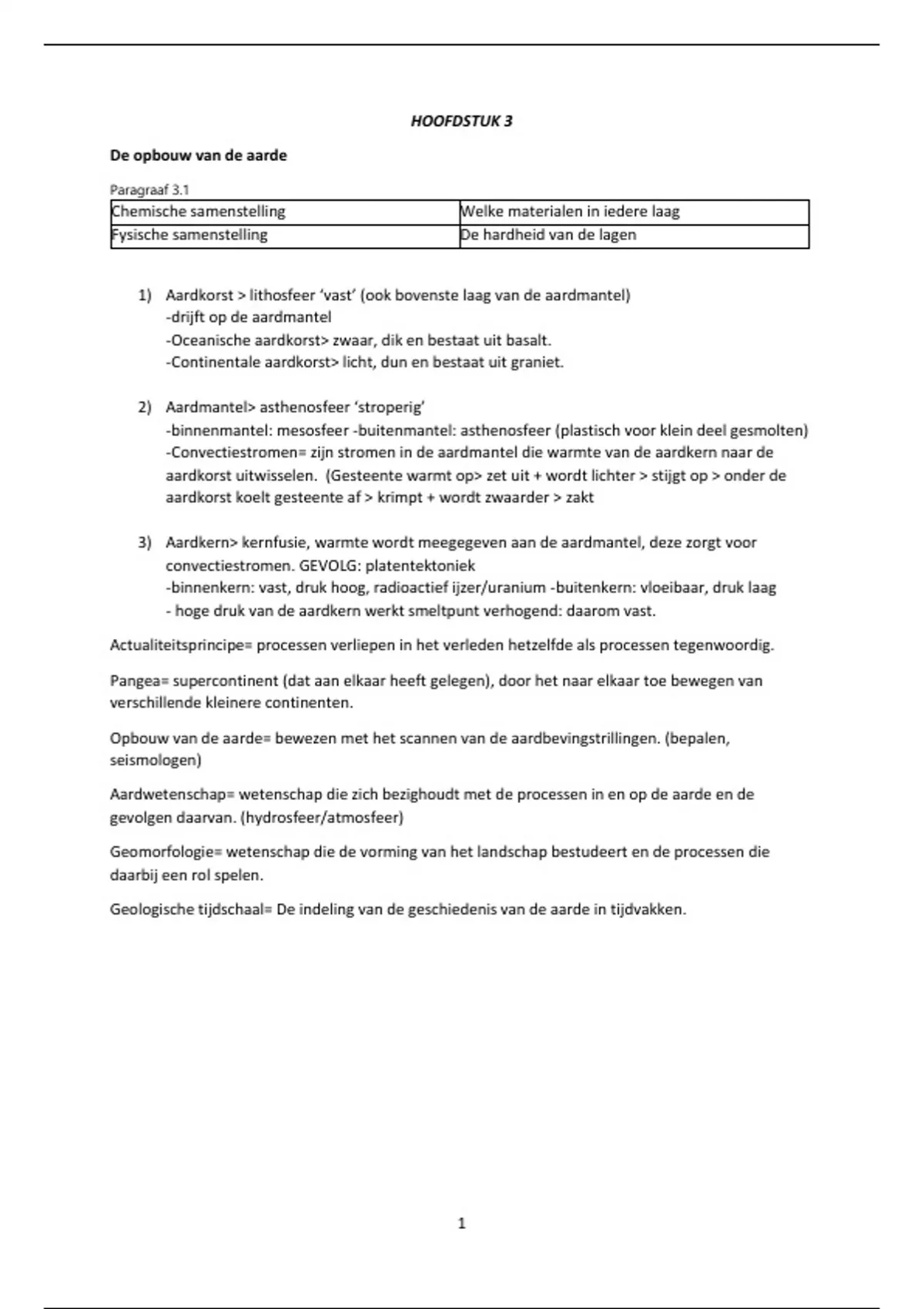 Aardrijkskunde samenvatting 3.1 / 3.9 opbouw van de aarde