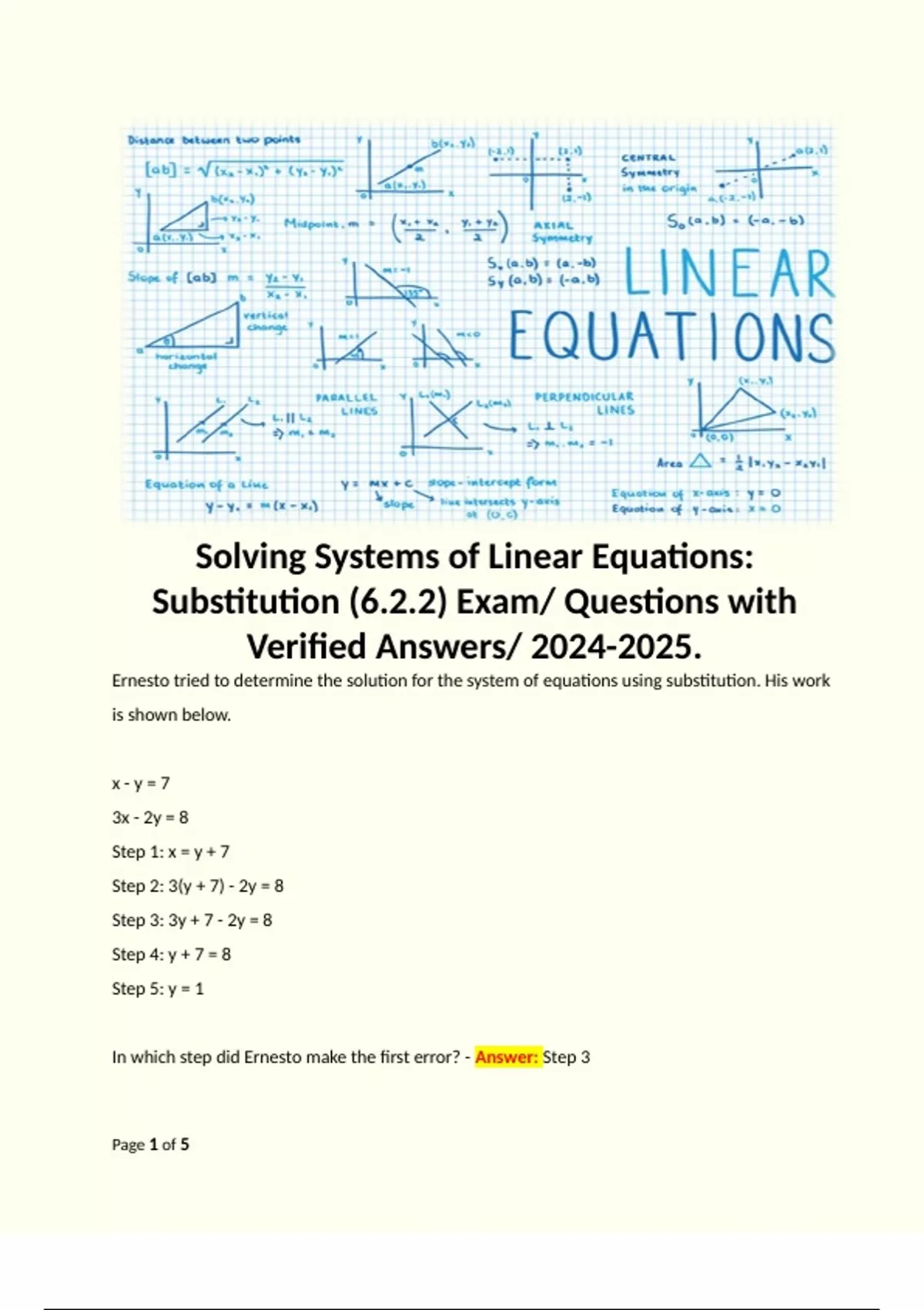 Ernesto tried to determine the solution for the system of equations using substitution. His work